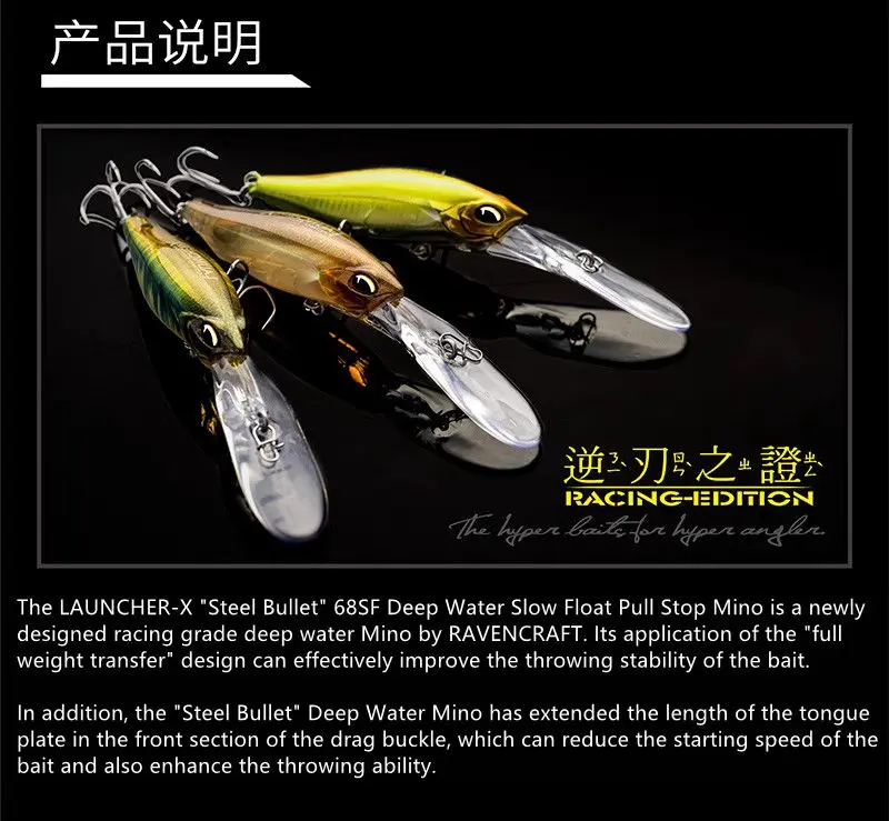 Ravencraft Gangdan 58/68SF señuelo de pesca de pececillo flotante lento 5,7g/10,6g profundidad de buceo 2,5-3m cebo falso Wobbler Artificial