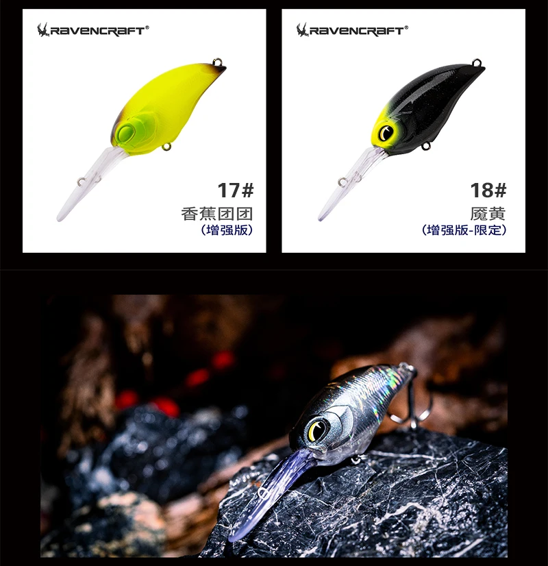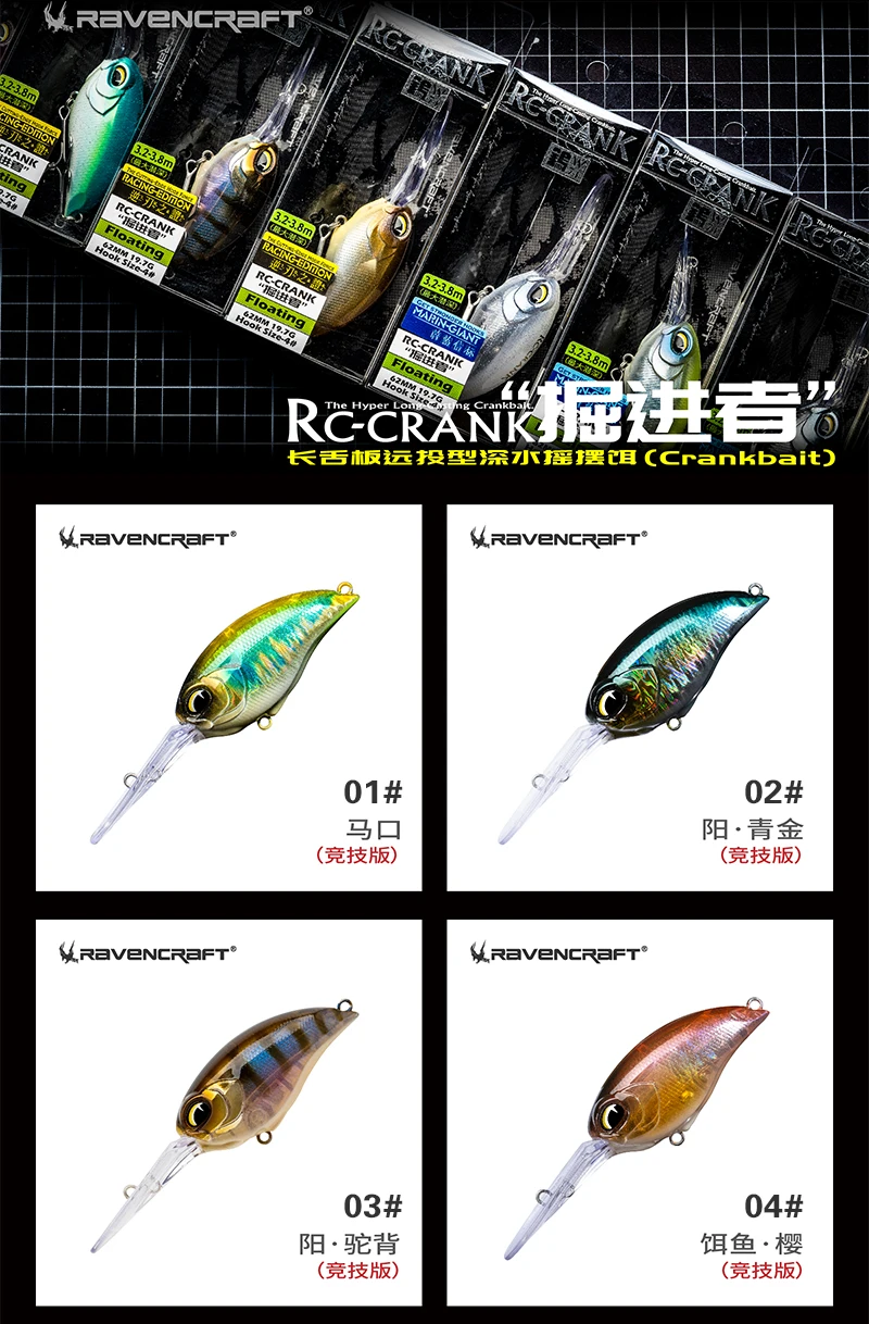 RC-CRANK Ravencraft 19,7g flotador de lanzamiento largo CrankBait Wobblers señuelo de pesca 62mm de largo labio Crankbait Isca cebo duro Artificial para trucha