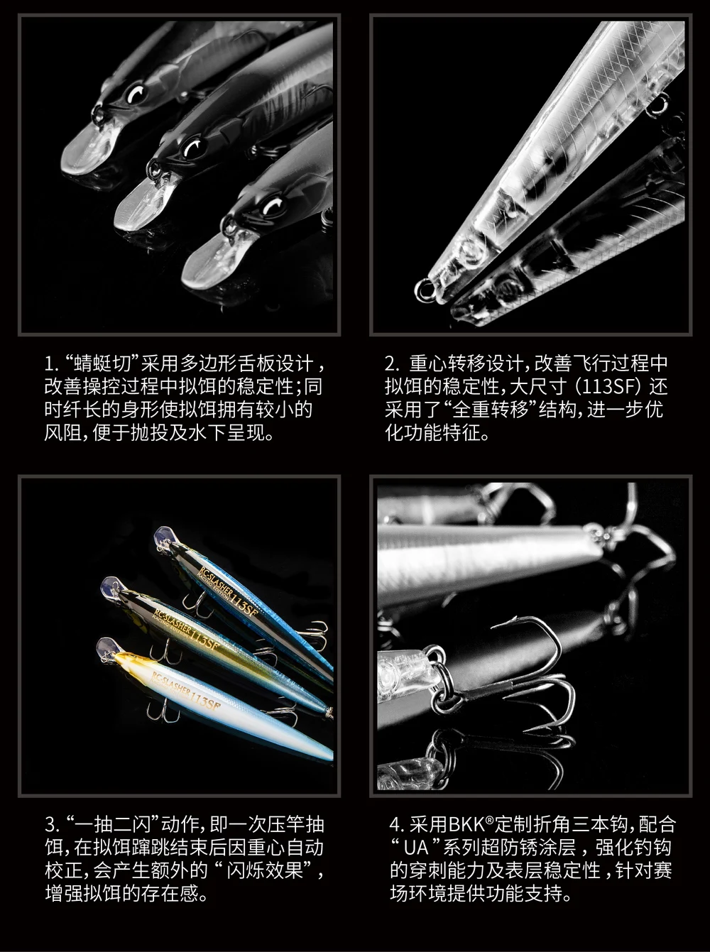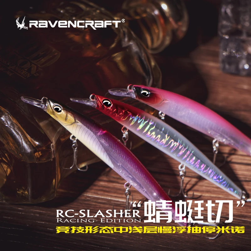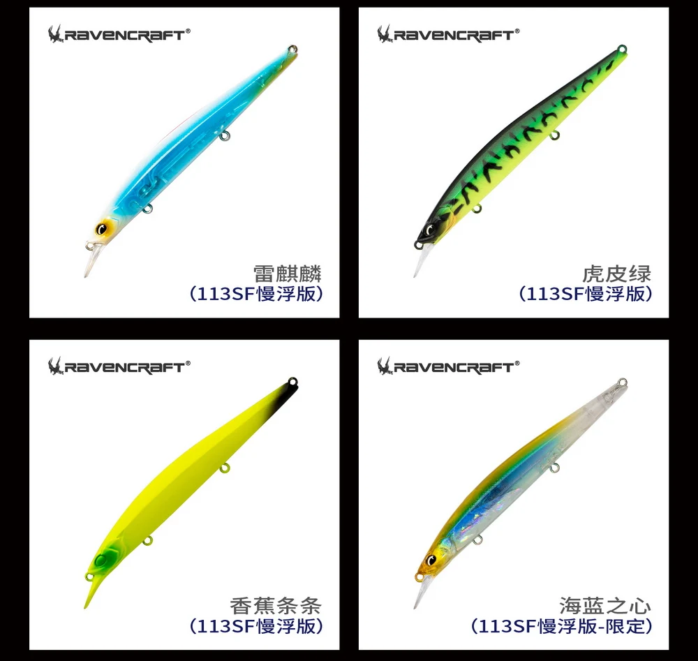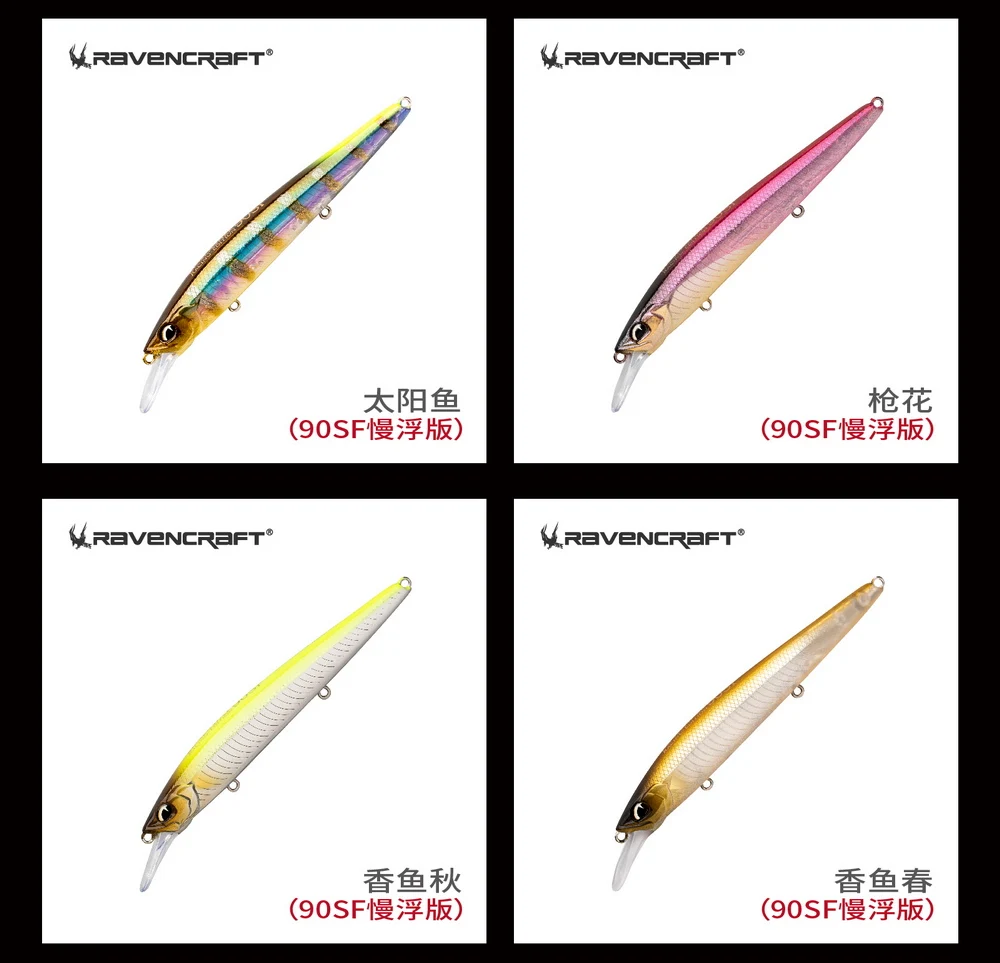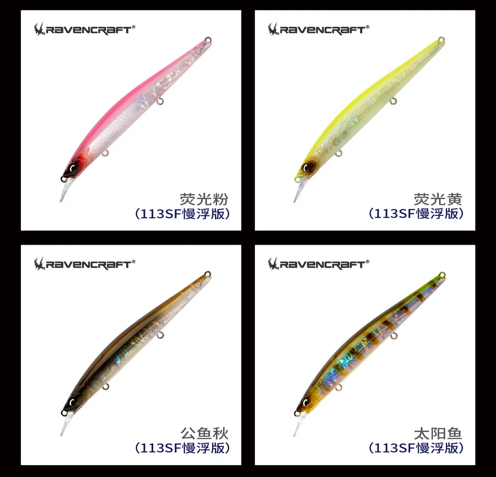 Ravencraft-señuelo de pesca de pececillo flotante lento Qtq 90SF/113SF, 7,5/12,2g, labio poligonal Artificial, Jerkbait para trucha, cebo duro
