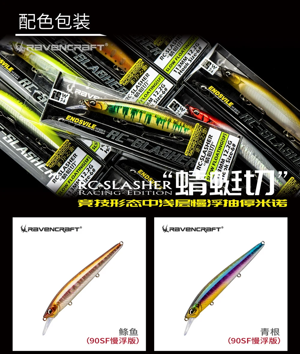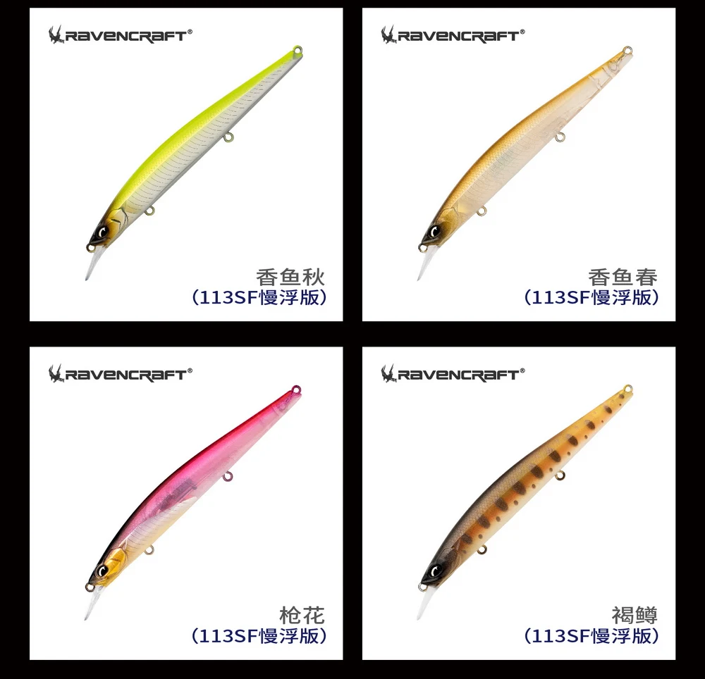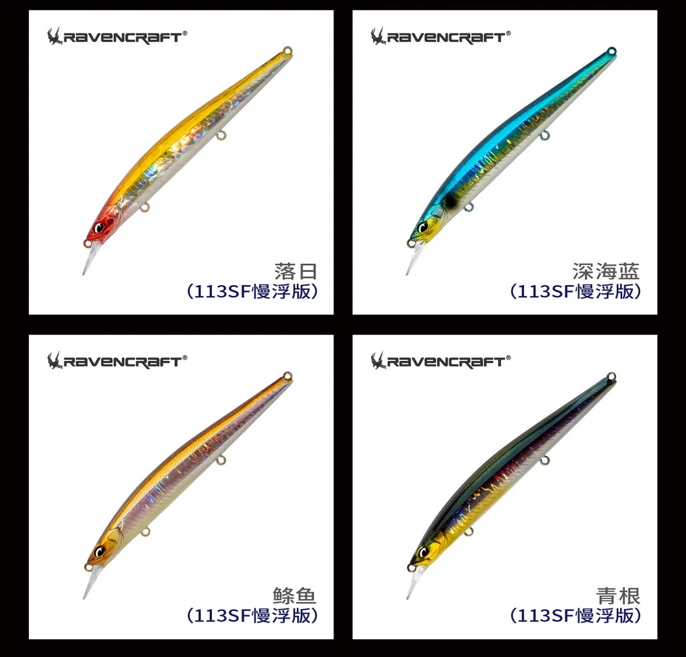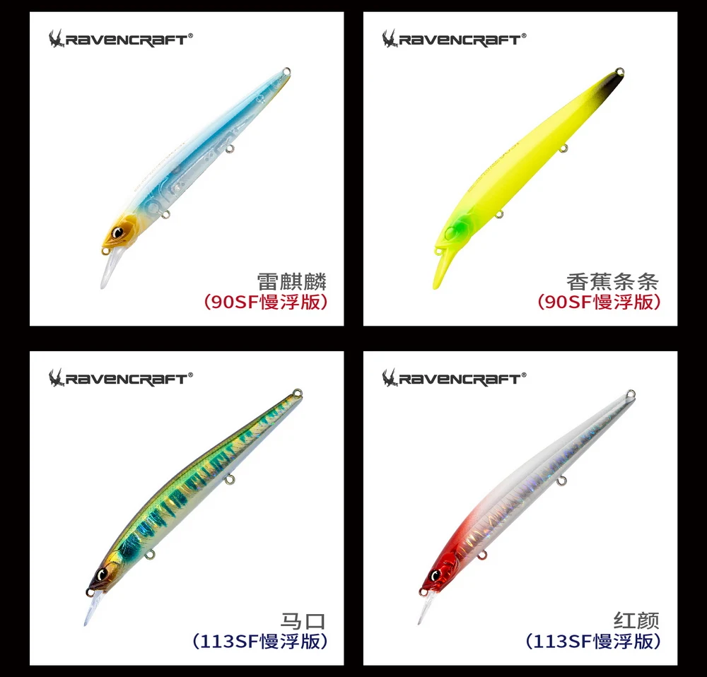 RAVENCRAFT-señuelo de Pesca de pececillos flotante lento 90SF/113SF, 7,5g/12,2g, labio poligonal, Wobbler Jerkbait para Pesca de lubina, cebo duro, nuevo