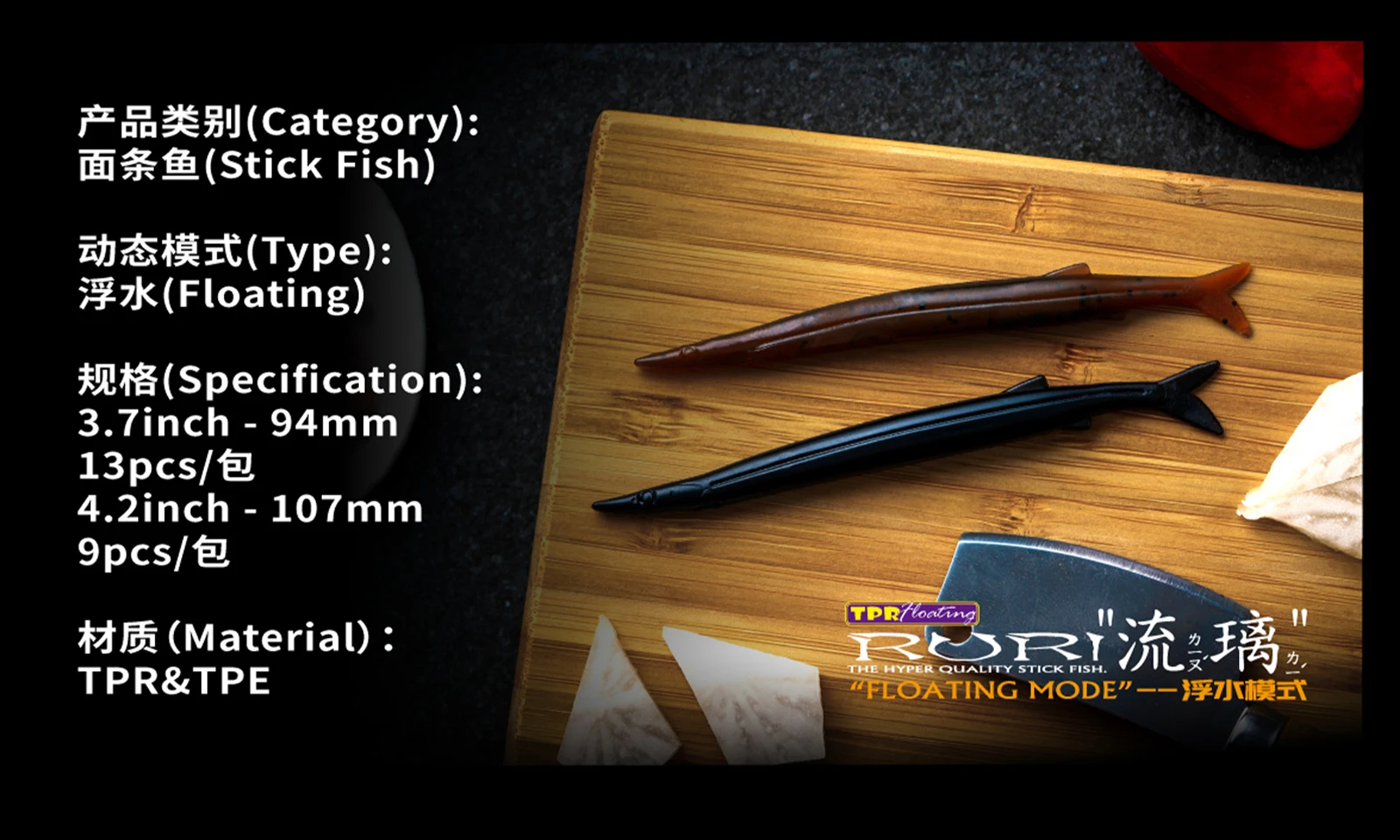 Ravencraft-SEÑUELOS de silicona para perca, palo flotante Liuli, 94mm/107mm, 9/13 piezas