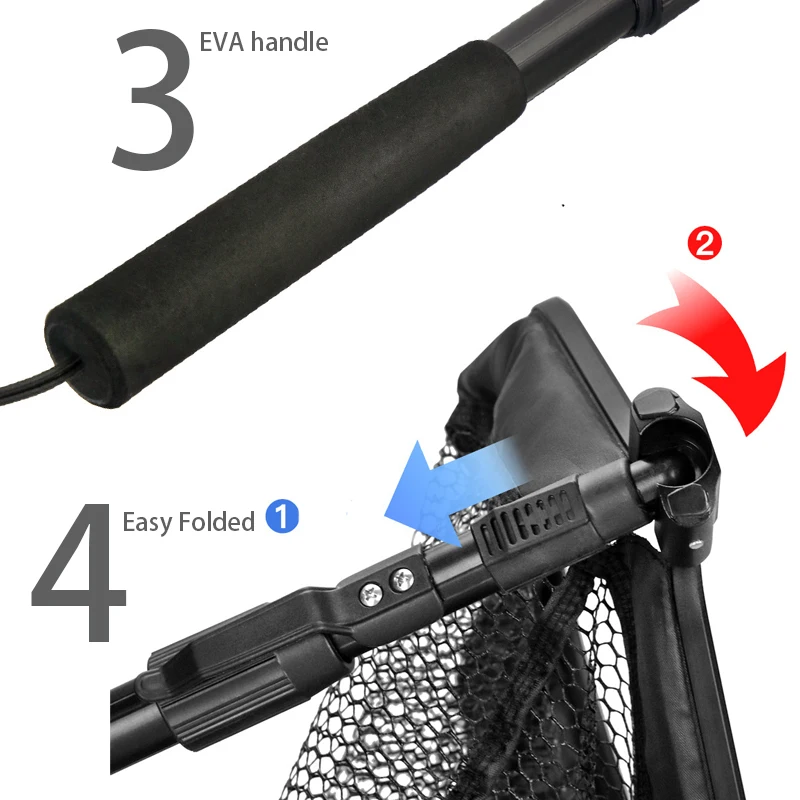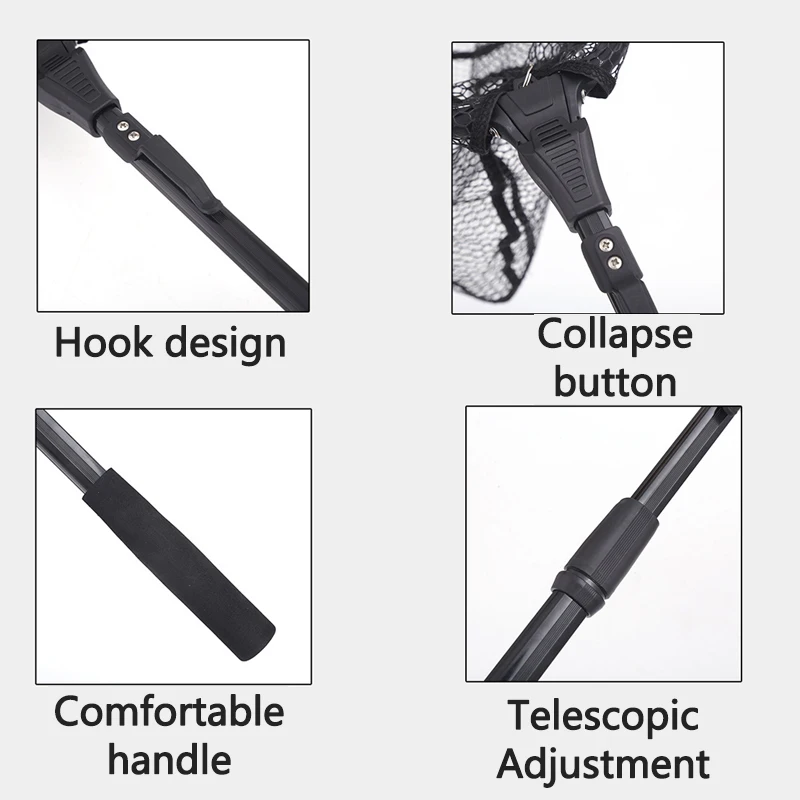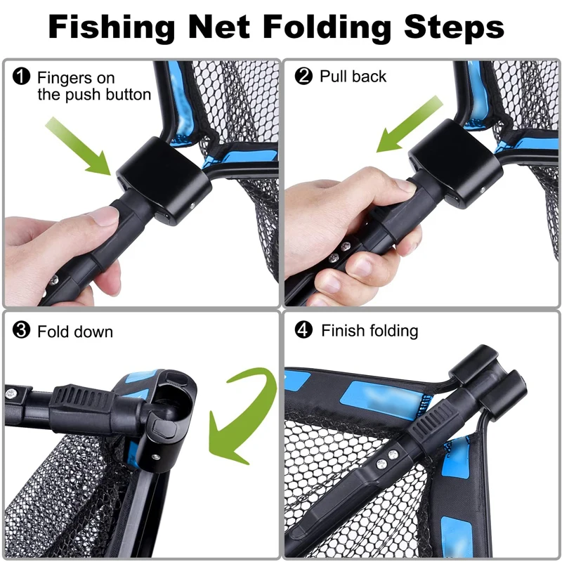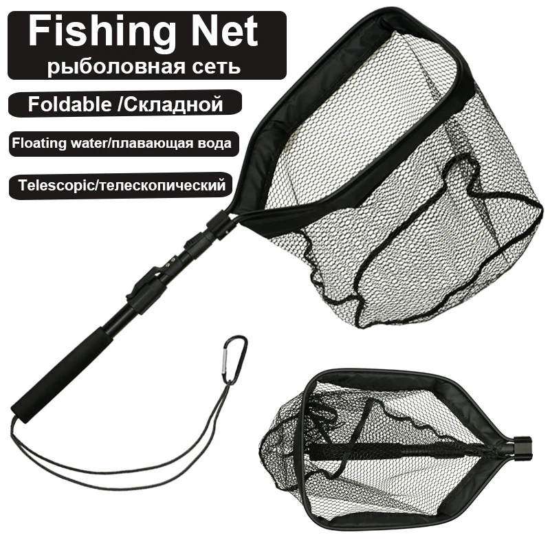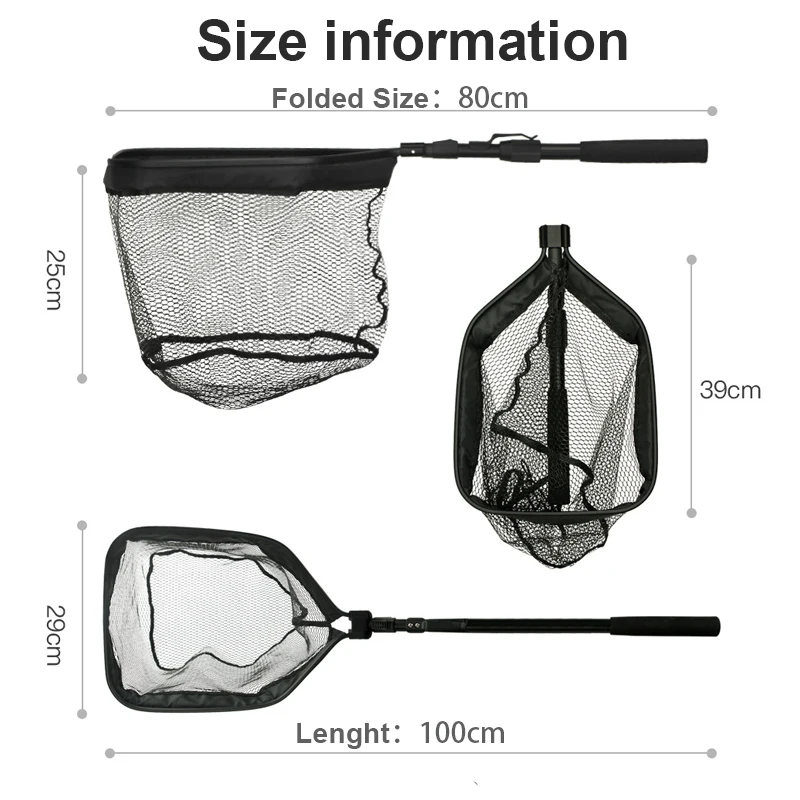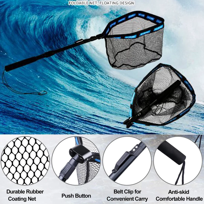 Red de aterrizaje flotante, red de pesca plegable telescópica, Red de inmersión recubierta de goma con cuerda de caída, poste portátil, equipo de pesca en el mar