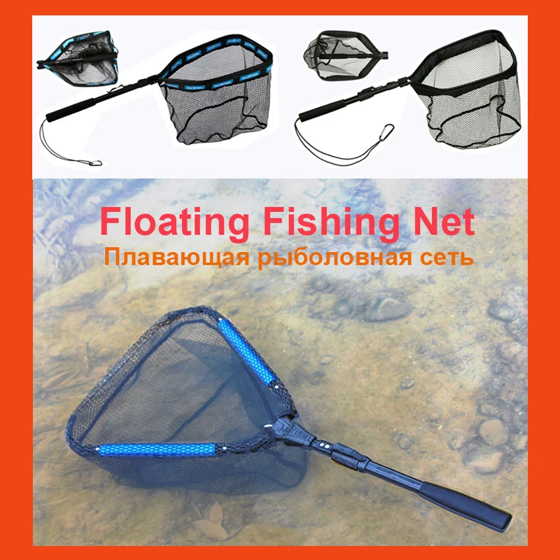 Red de aterrizaje flotante, red de pesca plegable telescópica, Red de inmersión recubierta de goma con cuerda de caída, poste portátil, equipo de pesca en el mar