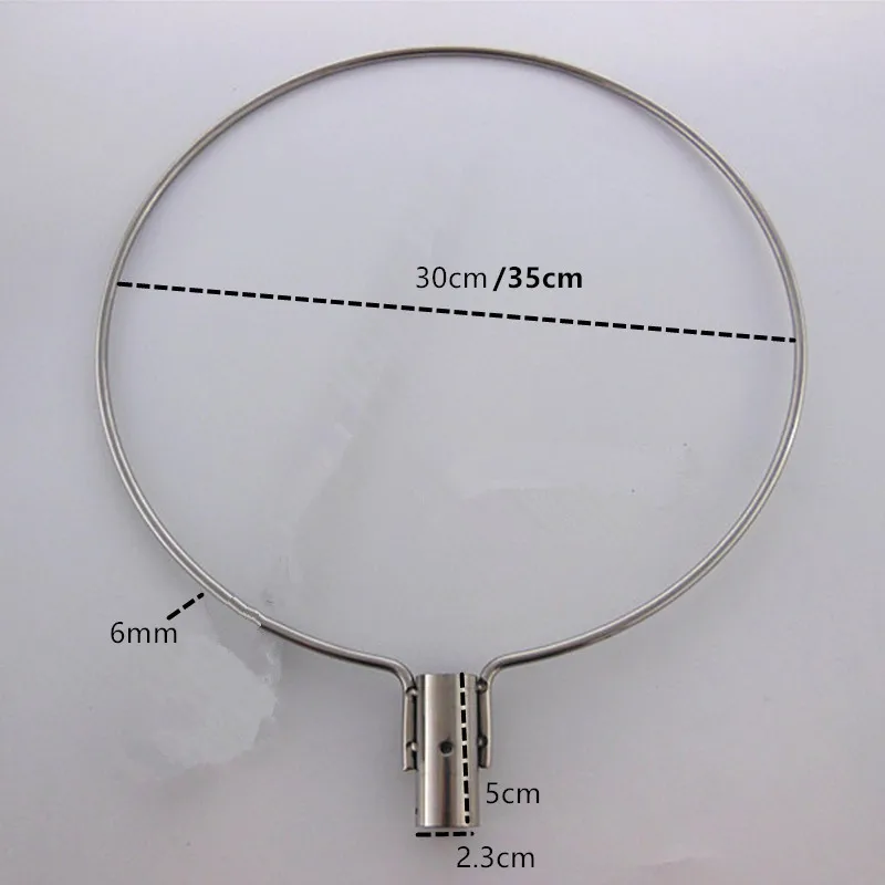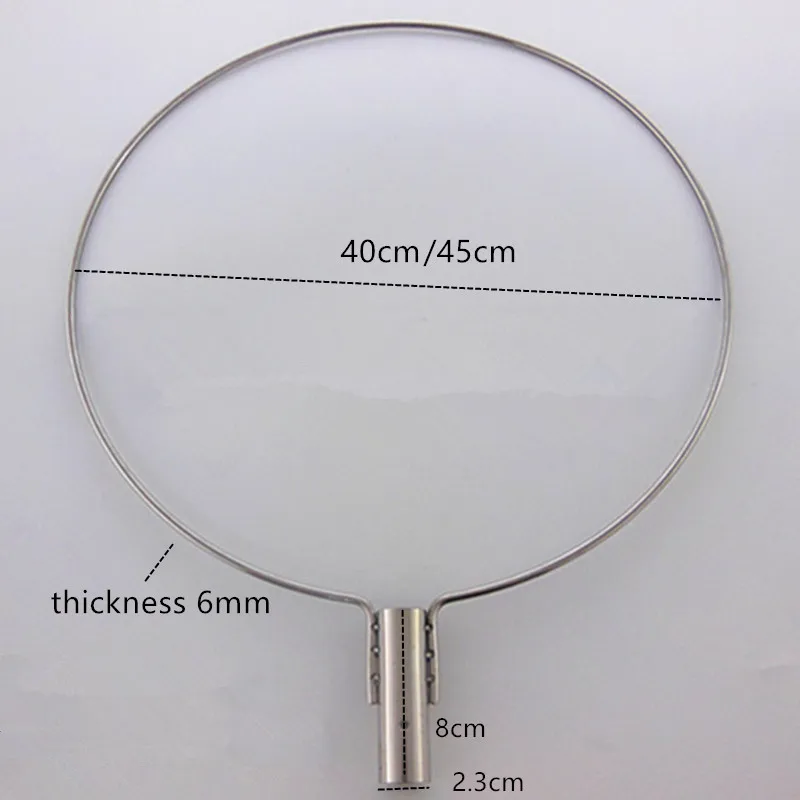 Dip neto de la cabeza, sólido anillo de acero inoxidable 3041. Material: acero inoxidable 304 sólido2. Grosor: 6mm3) diámetro: 30cm/35cm/40cm/45cm4.Color: plata