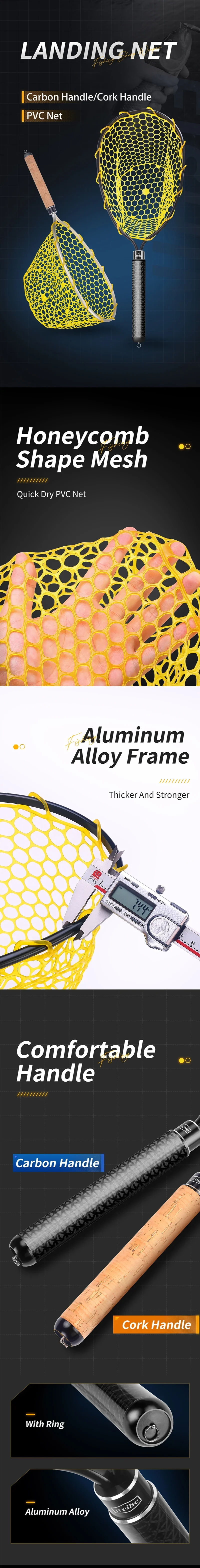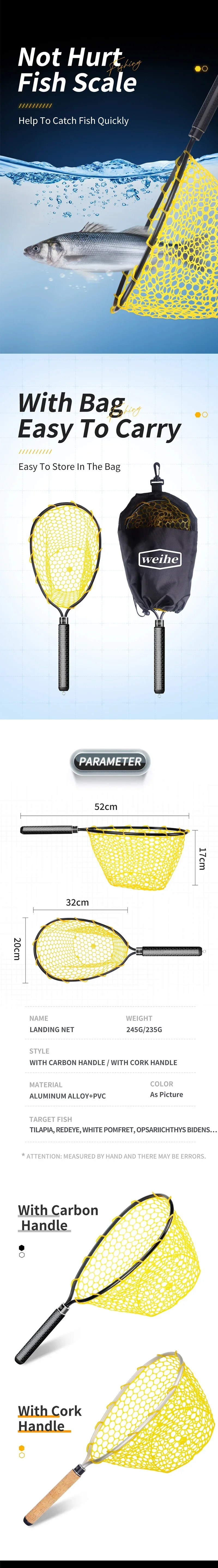 WEIHE red de aterrizaje con mango de carbono o mango de corcho red de pesca de PVC cabeza de aleación de aluminio
