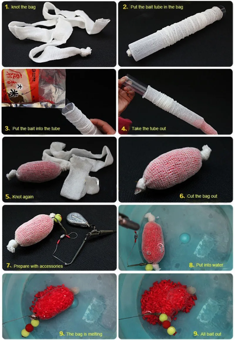 Red de aterrizaje de pesca estrecha Soluble PVA de 5M, bolsa de cebo de repuesto, protege la red de pescado, herramienta de cebo, accesorio de aparejos de red de pesca