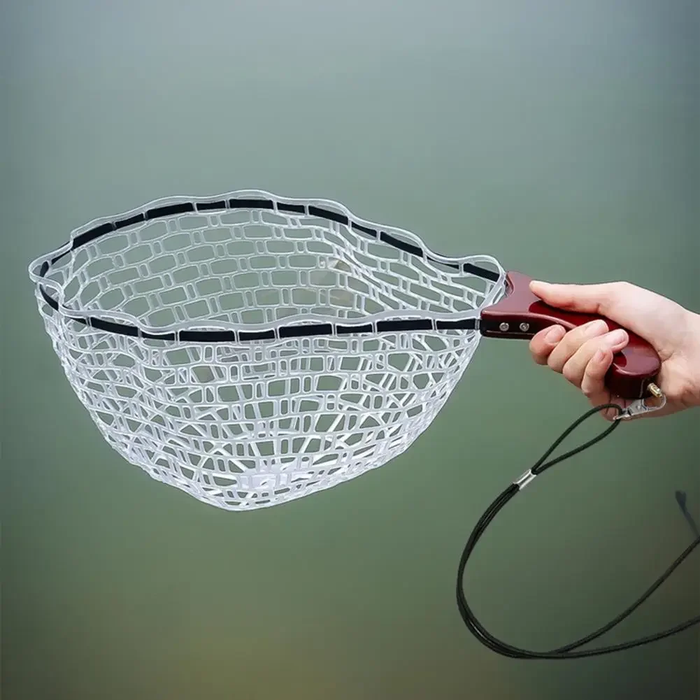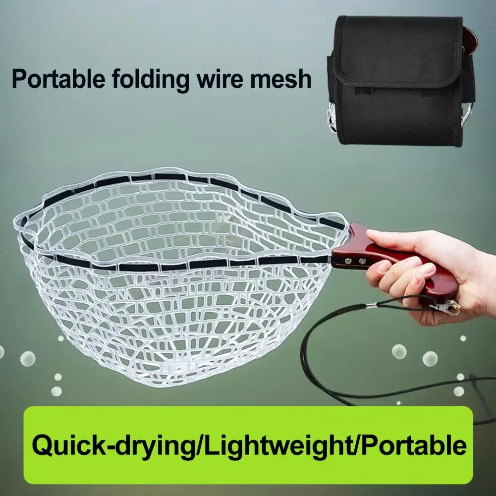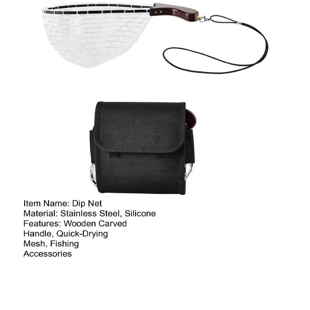 Red de aterrizaje de pesca con mango tallado de madera, de secado rápido, plegable, de silicona, liberación de captura de pesca, red de inmersión, Kayak, vadear, arroyo de río, accesorios de pescaEstructura y malla duraderas: fabricado con malla antiolor de secado rápido y un robusto anillo de acero 301 de alta elasticidad para mayor resistencia y durabilidad.Diseño plegable rápido para fácil almacenamiento y portabilidad.