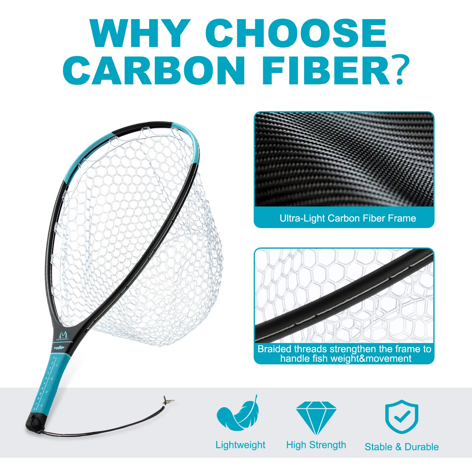 Maximumcatch Red de aterrizaje de carbono para pesca con red fuerte y ligera de mano de goma transparente