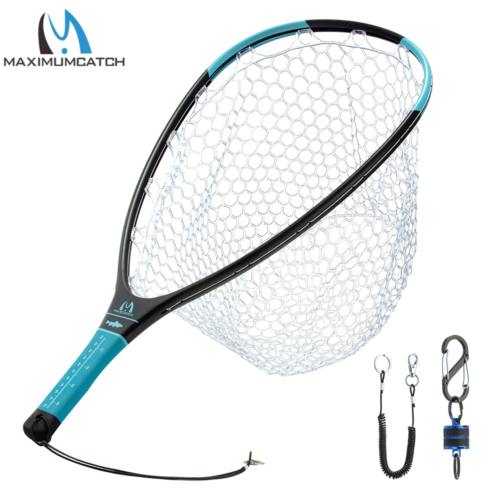 Maximumcatch Red de aterrizaje de carbono para pesca con red fuerte y ligera de mano de goma transparente