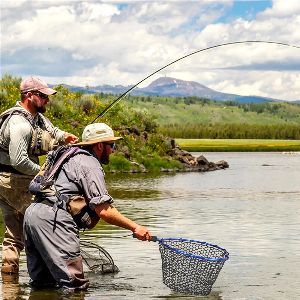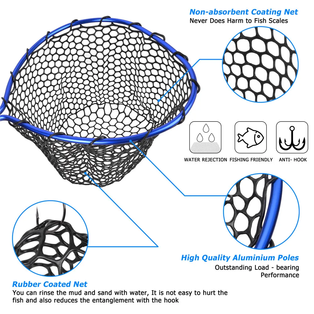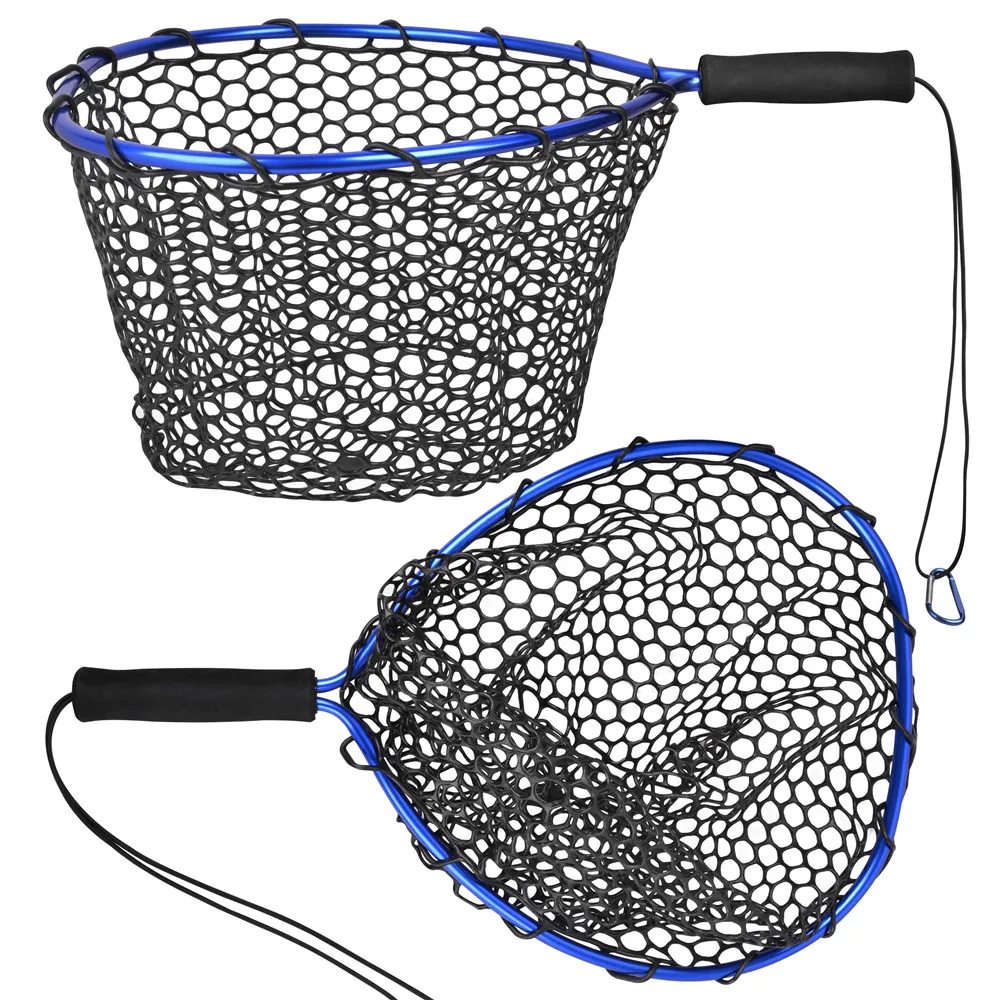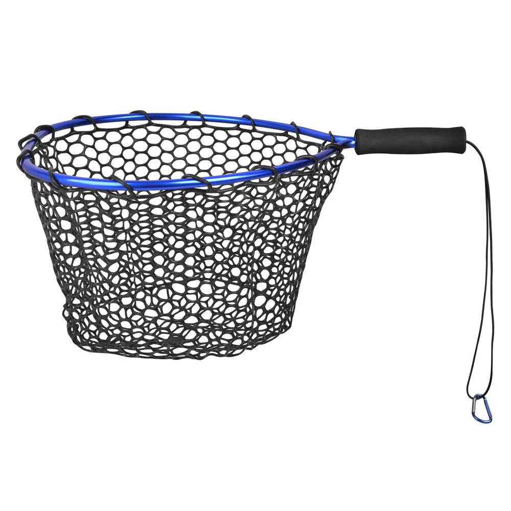 Red de aterrizaje para pesca con mosca, malla de goma azul, red de pesca manual, mango Eva, redes de pesca de lubina de agua salada para Kayak