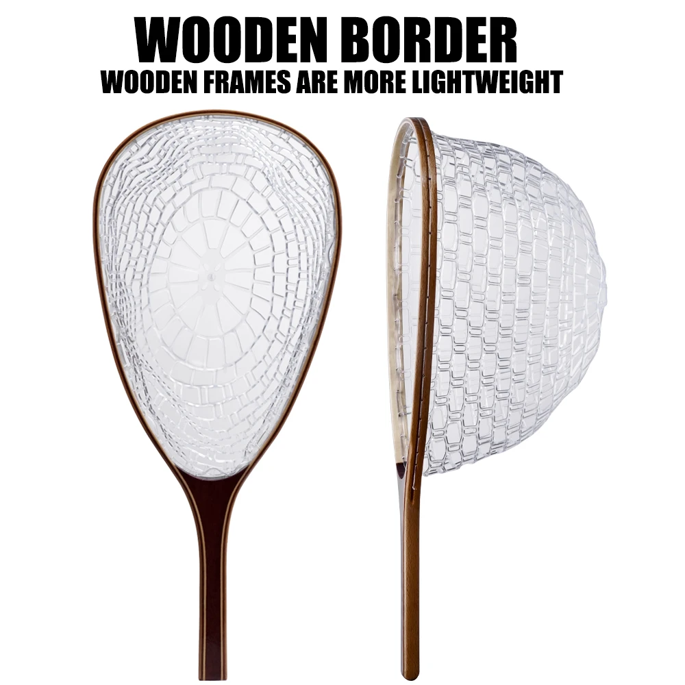 Red de aterrizaje de pesca con mosca, red de captura y liberación de trucha de goma, con poste de madera, herramienta de pesca al aire libre