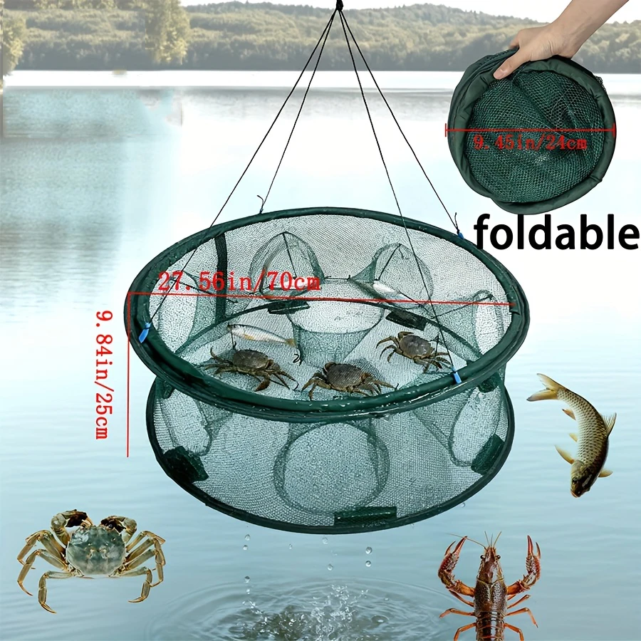 Red de camarones de doble capa con 15 agujeros, trampa automática para pesca con mosca, jaula Schepnet, cebos para cangrejos y pececillos, receptor de malla fundida, herramientas de redes para peces T4