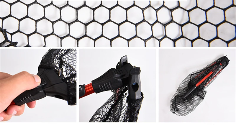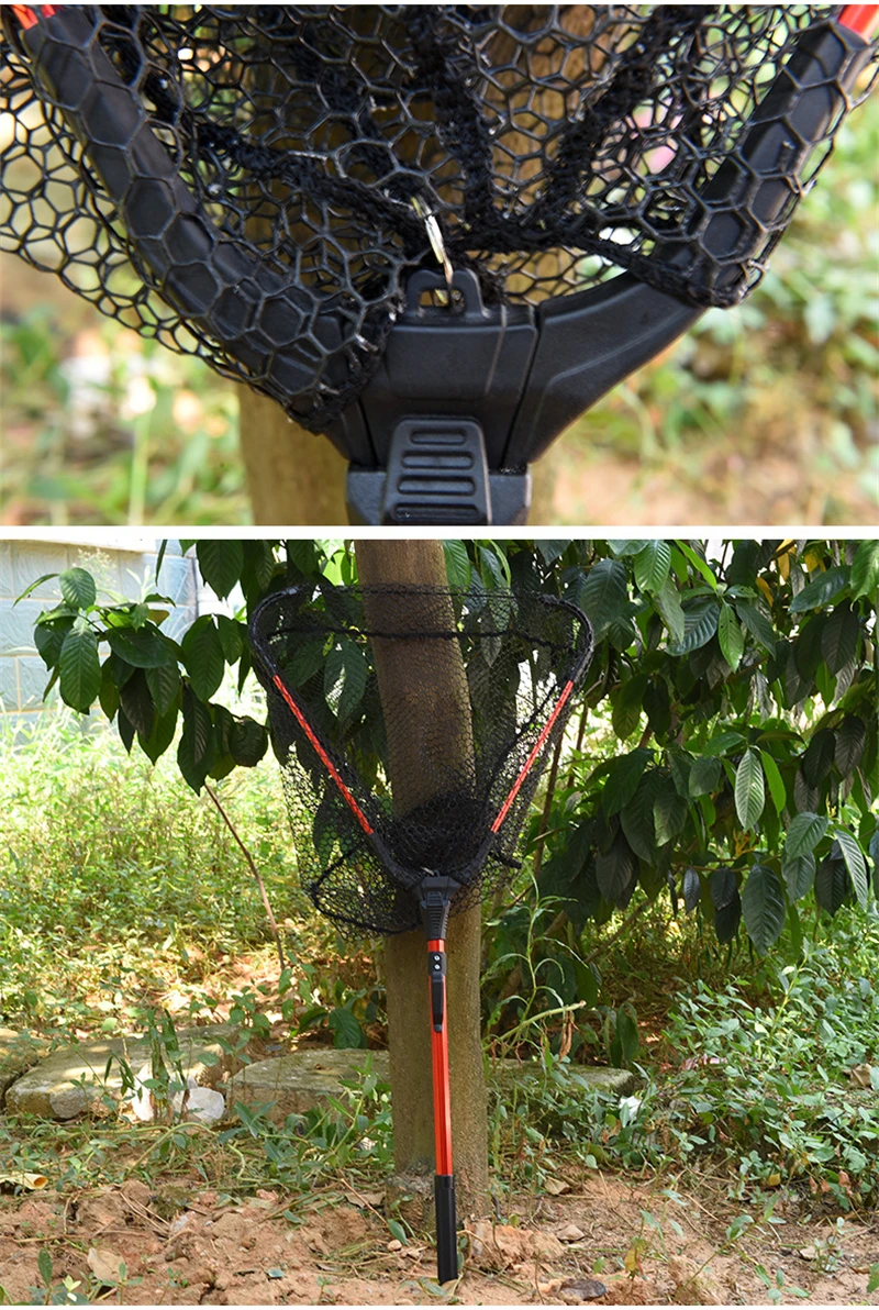 La parte de conexión de la red de pesca plegable del mango está hecha de plástico ABS de alta resistencia y la hebilla ABS en el poste principal facilita su transporte.