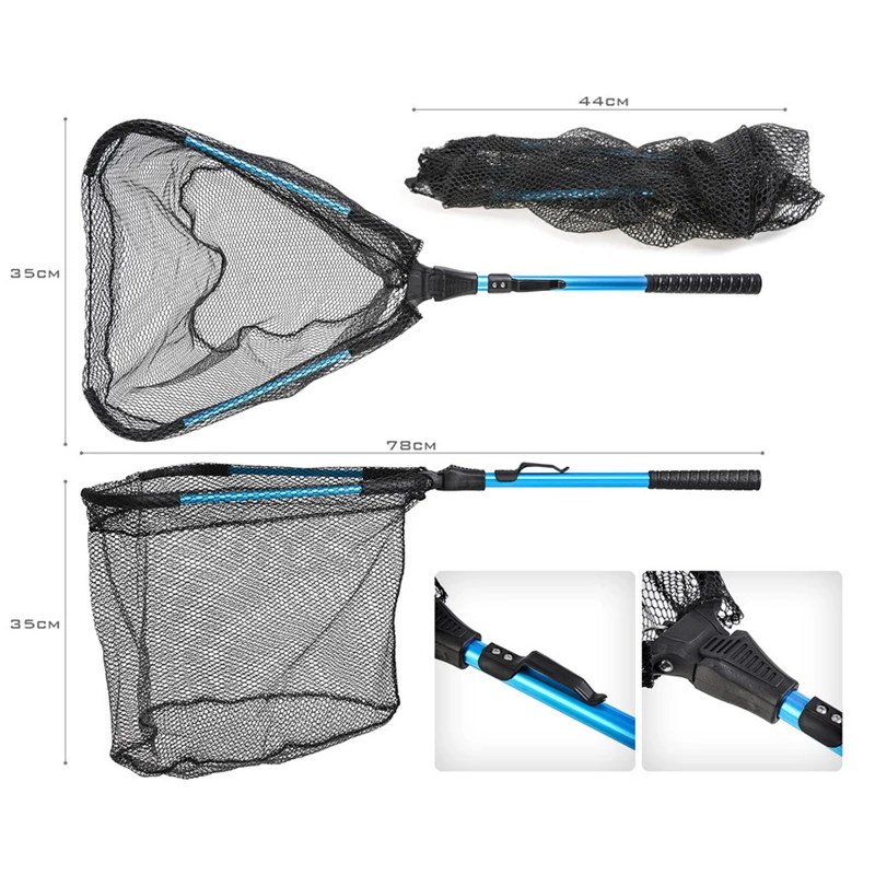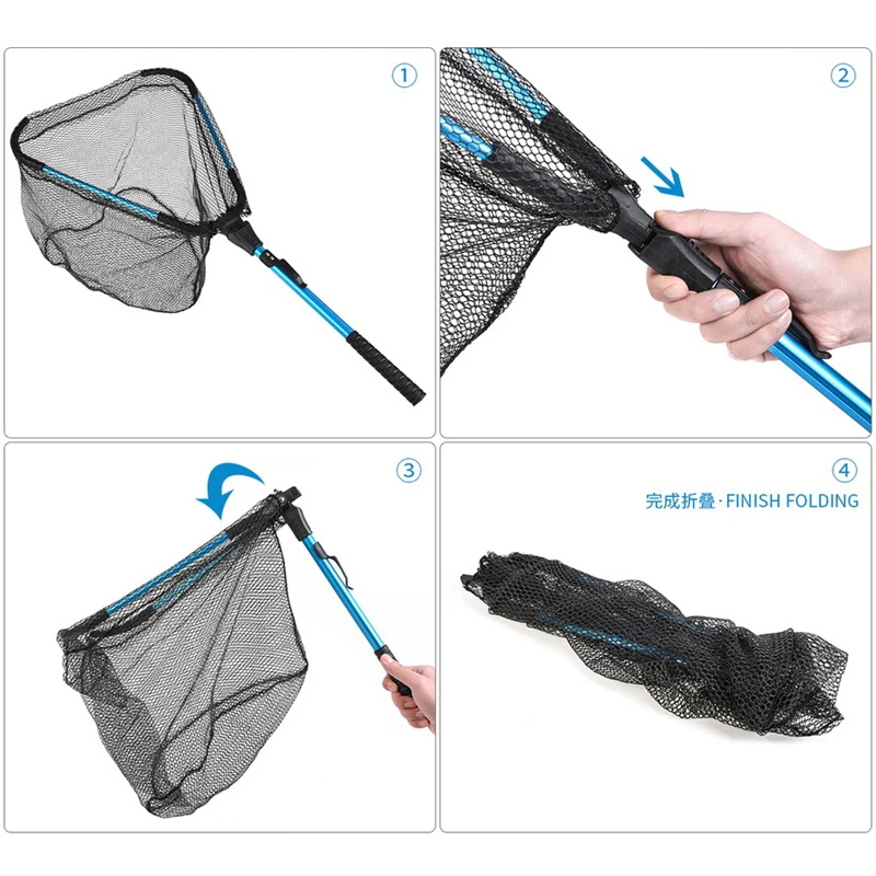 La red de pesca plegable con mango está equipada con un poste de aluminio resistente a la corrosión y un proceso de revestimiento fino para la superficie.fuerte y duradero.