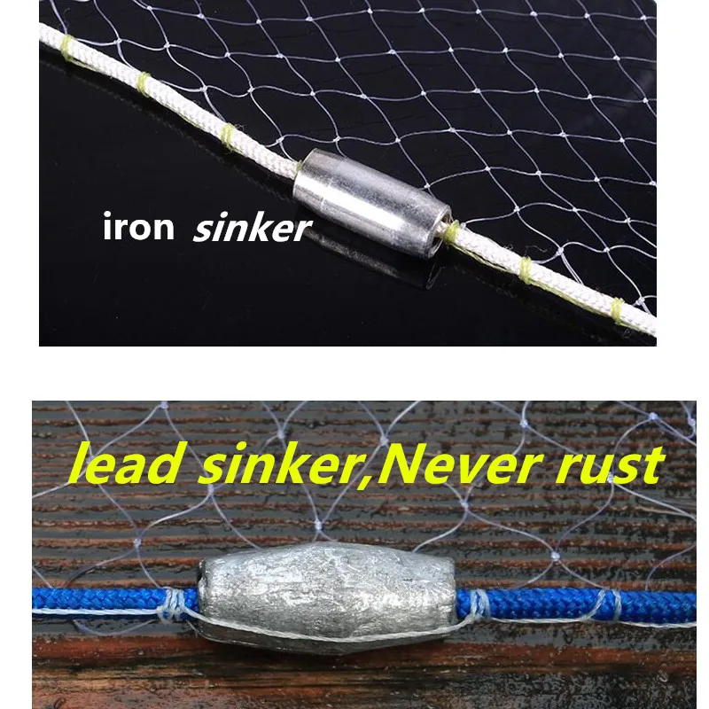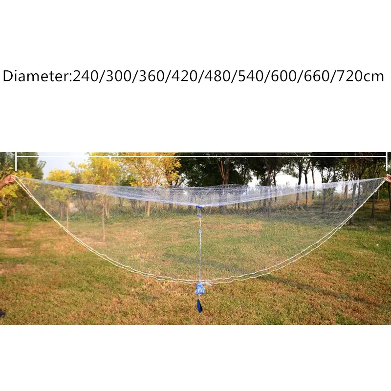 1. Estilo: Red fundida2.Material: monofilamento de nailon3.color: blanco4. Plomada: hierro galvanizado/plomo5. Malla: 12mm * 12mm-15mm * 15mm6. Grosor/hilo: 0,3mm**** Detalles del tamaño ****Para elegirPlomada de hierro. 300cm x 300cm(9.5ft) alrededor de 1,6 kg. 360cm x 360cm(11.5ft) alrededor de 1,9 kg. 420cm x 420cm(13.5ft) alrededor de 2,3 kg. 480cm x 480cm (15,5) de 2,6 kg. 540cm x 540cm17.5ft) alrededor de 2,8 kgPlomada de plomo (no se oxida). 300cm x 300cm(9.5ft) alrededor de 1,6 kg. 360cm x 360cm (11,5) de 1,9 kg. 420cm x 420cm(13.5ft) alrededor de 2,3 kg. 480cm x 480cm(15.5ft) alrededor de 2,6 kg. 540cm x 540cm(17.5ft) alrededor de 2,8 kg