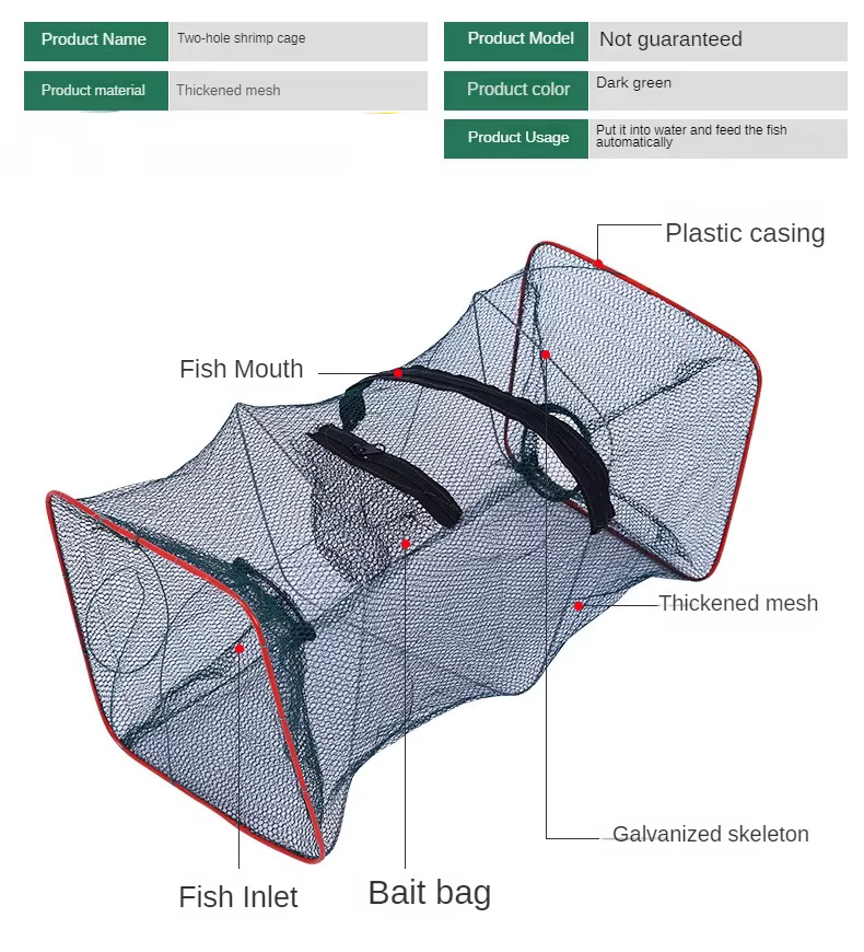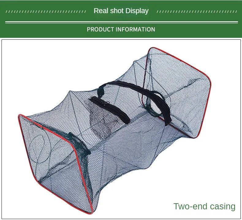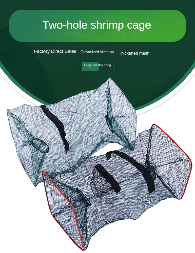 Red de langosta plegable de dos agujeros, red de pesca con resorte, suministros de pesca