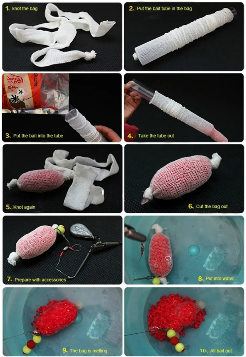 Red lanzadora de cebo de pesca PVA de 5 metros, alimentador de cebo redondo, red Euclidiana Soluble en agua, protección del medio ambiente, red de pesca de carpa