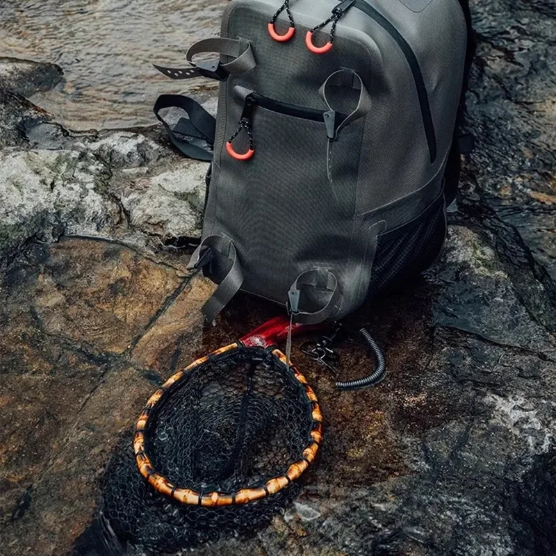 Red de mano de nailon para pesca con mosca de raíz de bambú, red de pesca con mosca pequeña, red de señuelo de pesca, red de pesca hecha a mano portátil de raíz de bambú