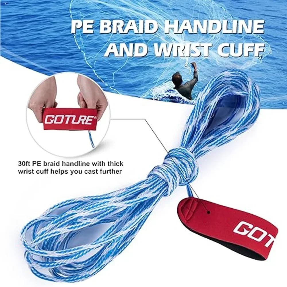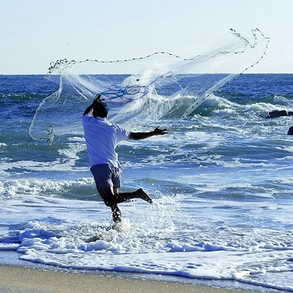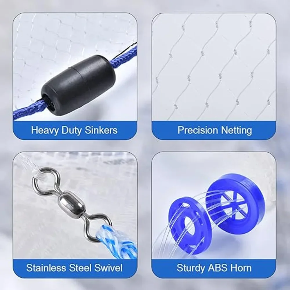 4.Capturar cebo en aguas más profundas o corriente.Borde grabado con 3/4 lb.de peso por pie de radio.Proporciona un fregadero rápido y un sello inferior hermético para