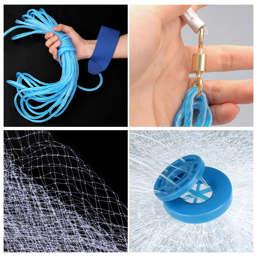 Equipado con una pulsera gruesa y cómoda para mantener la red en la mano después de cada lanzamiento, con una cuerda de mano trenzada de PE de 30 pies para brindarle un rango de pesca más largo.
