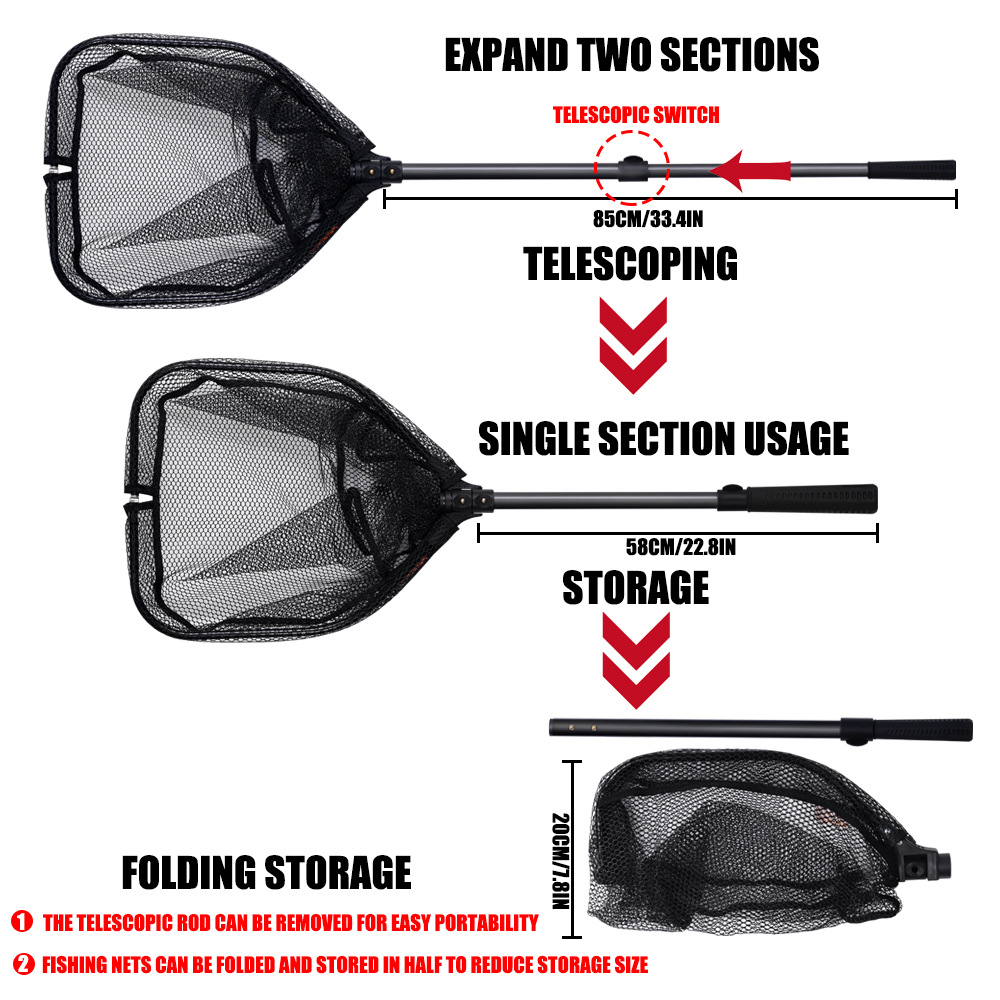Red de pesca de aleación de aluminio de gran tamaño, red de aterrizaje recubierta de goma, red de aterrizaje plegable telescópica para aparejos de pesca de carpa marina