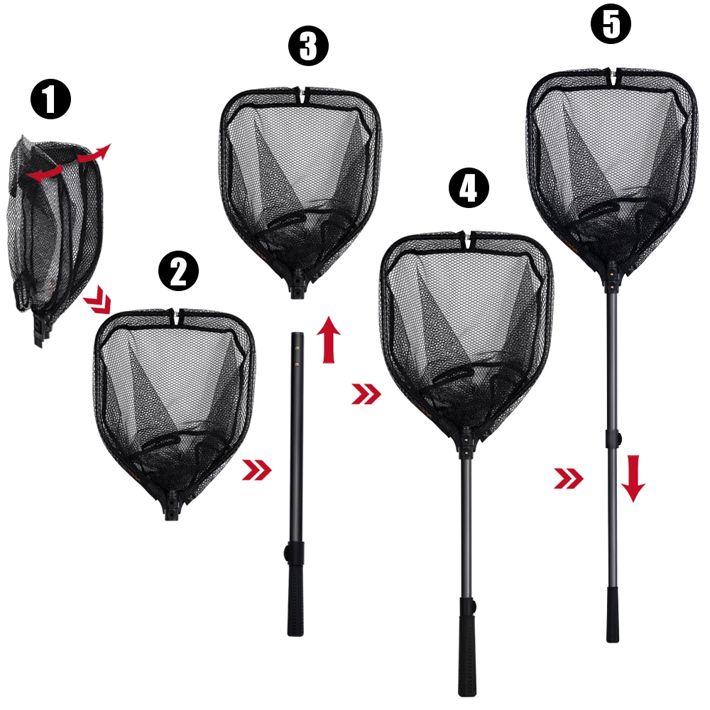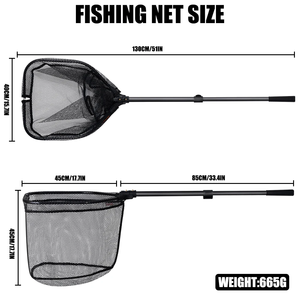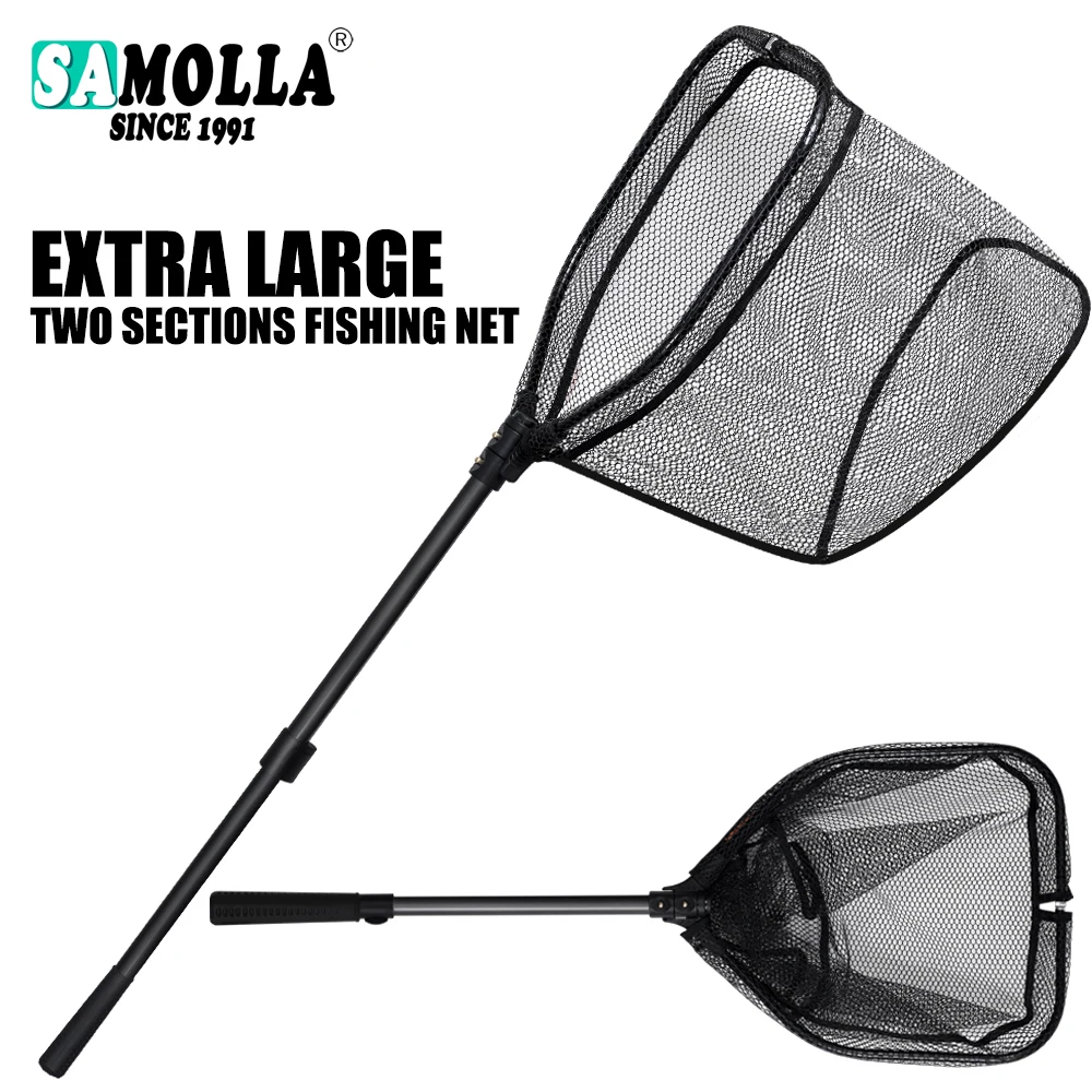 Red de pesca de aleación de aluminio de gran tamaño, red de aterrizaje recubierta de goma, red de aterrizaje plegable telescópica para aparejos de pesca de carpa marina
