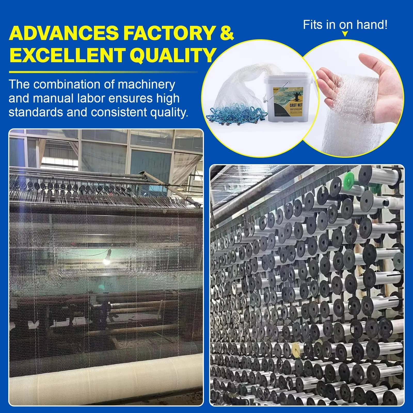 Línea principal engrosada y bocina multiseccionada: La línea principal espesa y fuerte proporciona una potente resistencia al rodamiento.El divisor de línea elimina los enredos y garantiza el funcionamiento normal de la línea principal y un mejor peinado de la línea principal.La línea de mano trenzada de PE de 22,9 pies te ayuda a lanzar más.La malla de 3/8" es ideal para capturar peces medianos a grandes, capturando eficazmente bancos de peces más grandes.