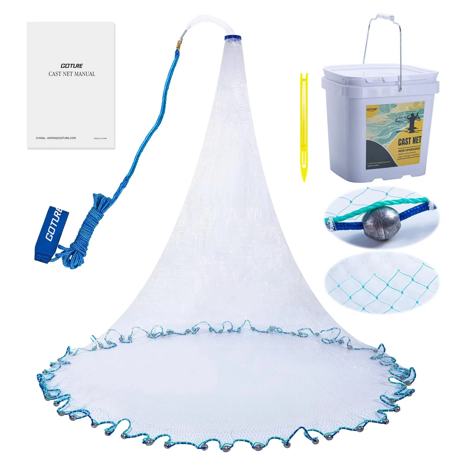 Red de pesca americana Goture de 3 pies-12 pies, con cubo, red de fundición de tamaño de malla de 3/8 pulgadas para cebo, trampa para peces, camarones, agua salada y agua dulce