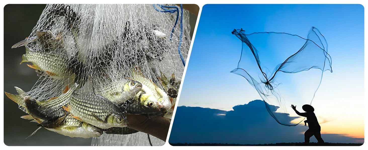 Material confiable: Fabricada con monofilamento de nailon reforzado de 0,30 mm de espesor, esta red fundida ofrece una resistencia, durabilidad y resistencia al desgarro o la deformación excepcionales.La red de fundición se teje utilizando maquinaria avanzada, lo que garantiza un diseño único, uniforme y suave.Su estructura en forma de diamante permite un lanzamiento fácil y una extensión eficiente, mientras que la contracción lenta después del despliegue mejora su capacidad para capturar peces.