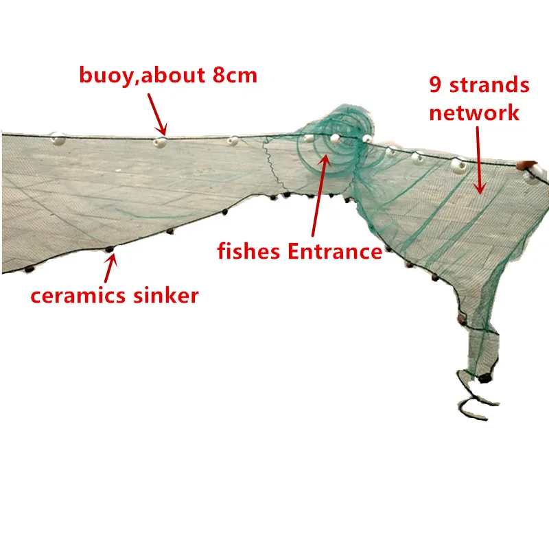 Jaula de pesca de entrada grande, jaula de camarones, material de red