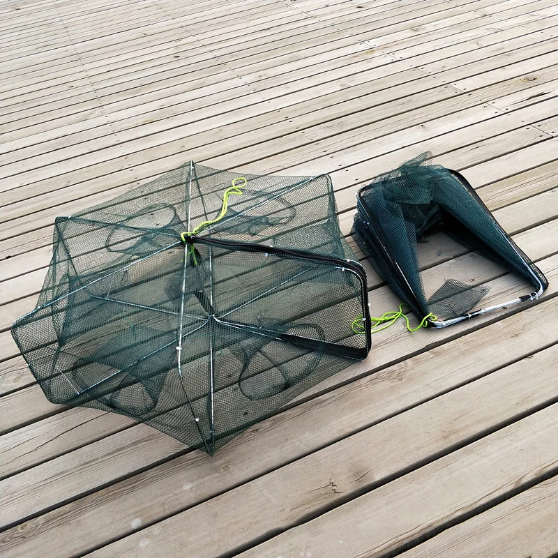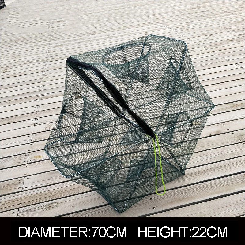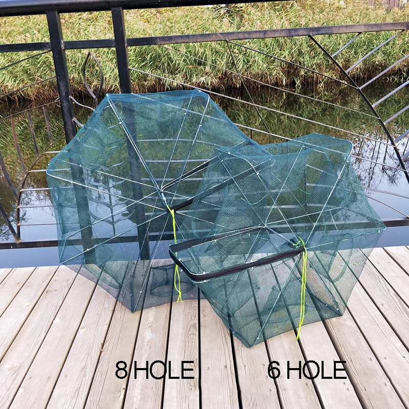 Red de pesca automática con 6 agujeros, red plegable hexagonal para pescar camarones, peces, camarones, pececillos, cebos de cangrejo, trampa de malla fundida B082