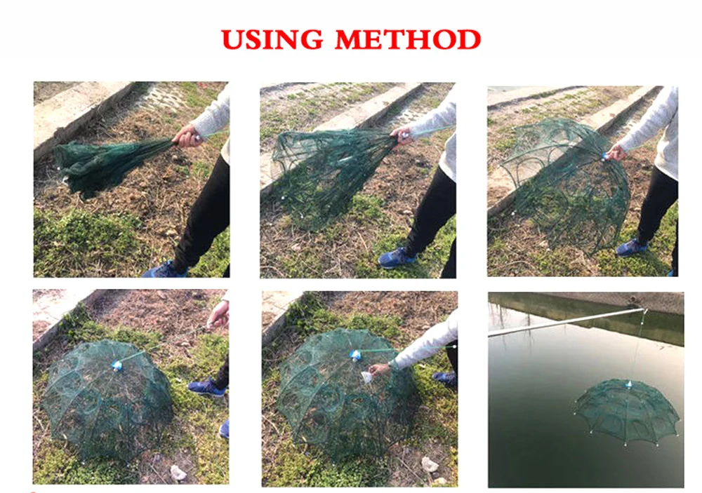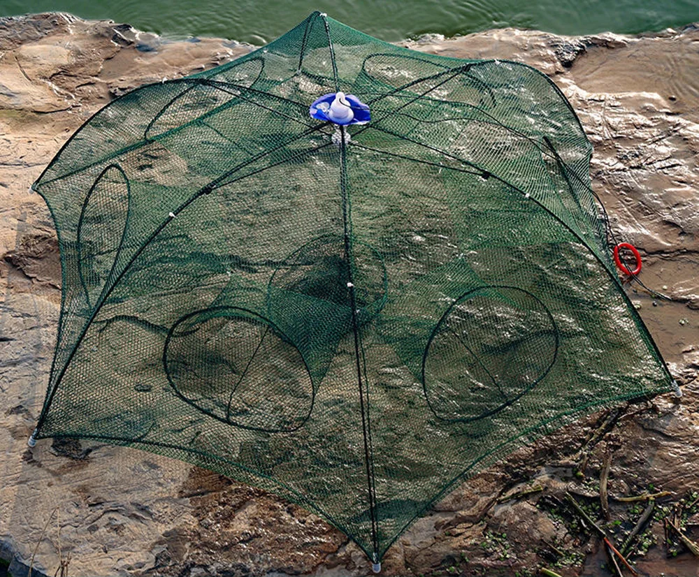 Red de pesca automática reforzada con 2-12 agujeros, jaula para camarones, trampa para peces plegable de nailon, redes fundidas, red de pesca plegable para exteriores