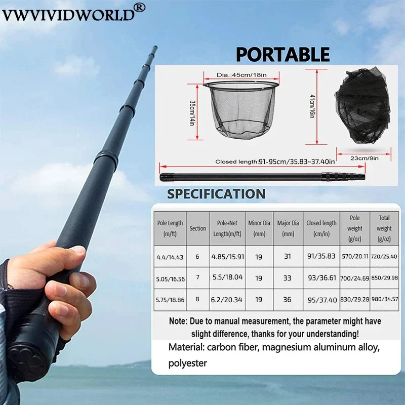 Nombre del producto: caña telescópica de malla de carbono, red de pesca.
