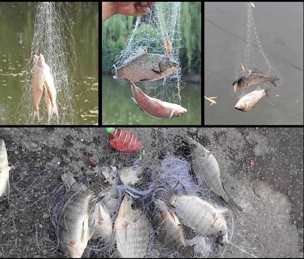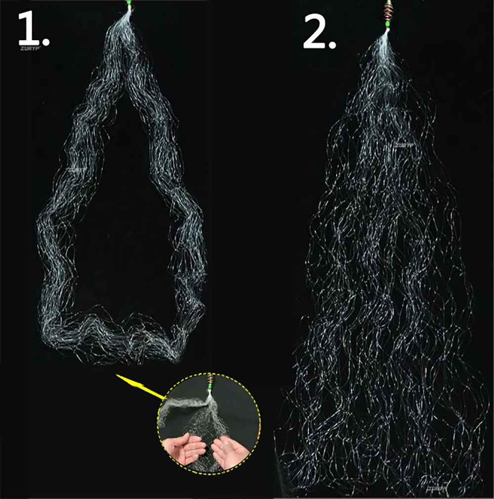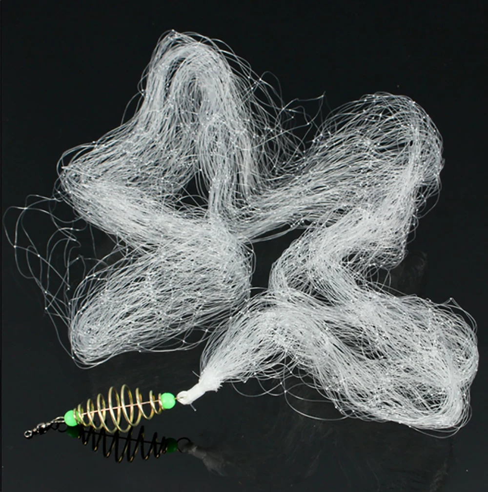 El principio es el mismo que el de la red de enmalle. Coloque el cebo en el anillo de resorte, coloque la red donde haya muchos peces y manténgala quieta, La flotabilidad abrirá la red. El cebo nebulizado atrae a los peces para alimentarse, y la red los atrapará.