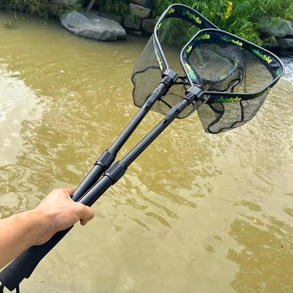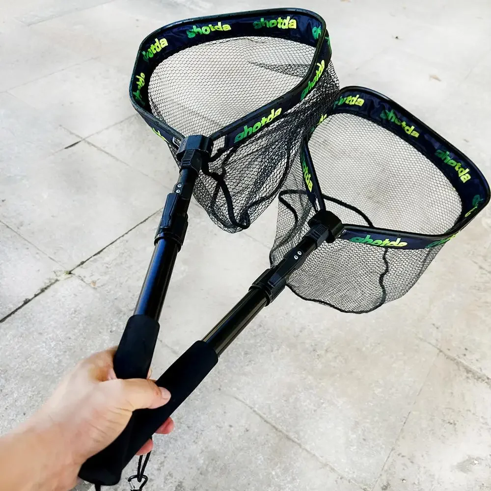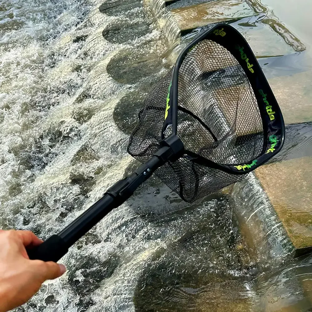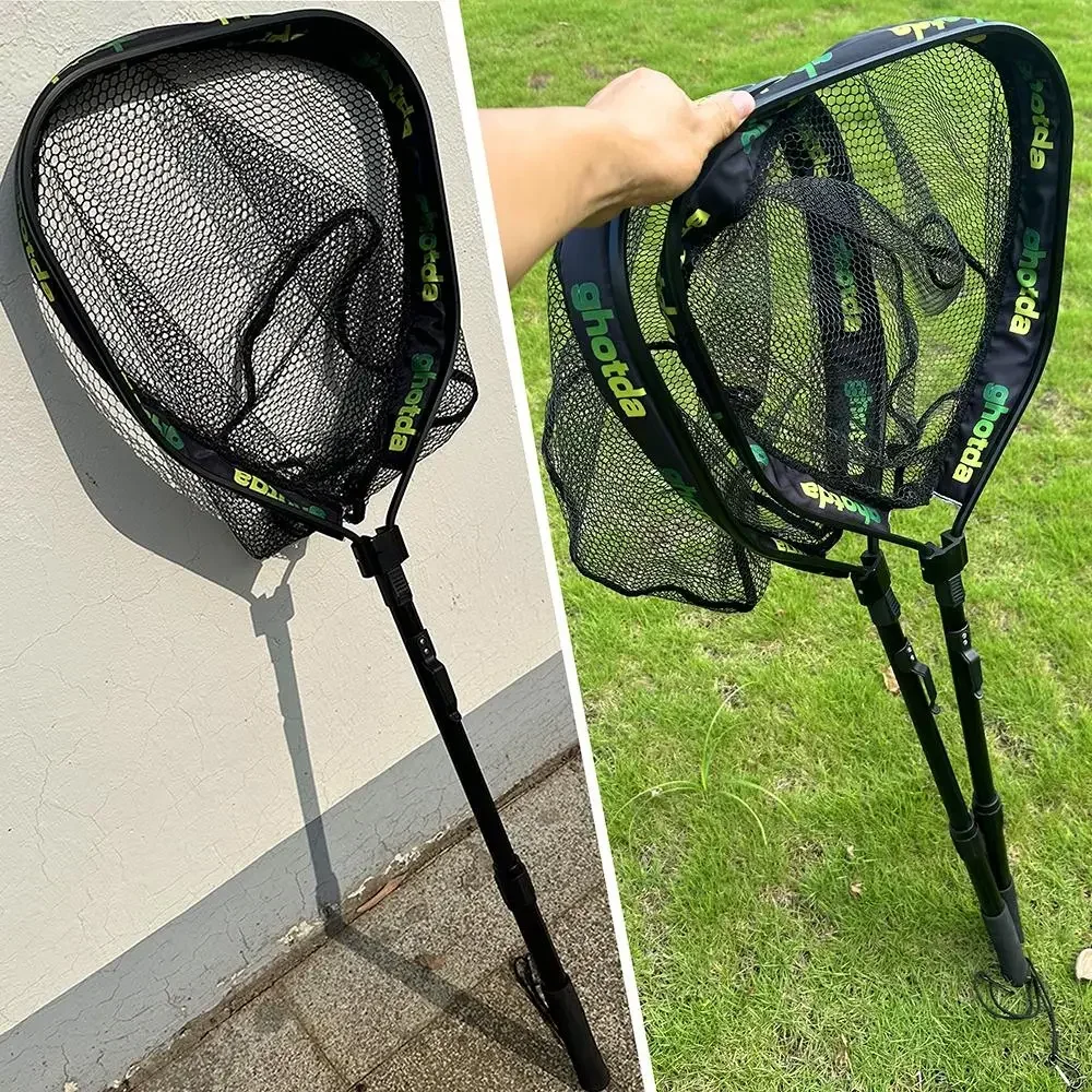 Red de pesca flotante Red de aterrizaje plegable Fácil captura y liberación con poste telescópico Red de pesca recubierta de goma para sal/agua dulce