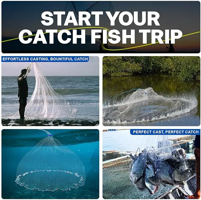Red de pesca Goture con plomo, red de pescado de malla pequeña americana pesada, radio de 3 pies-12 pies, redes trampa de pesca para lanzar a mano