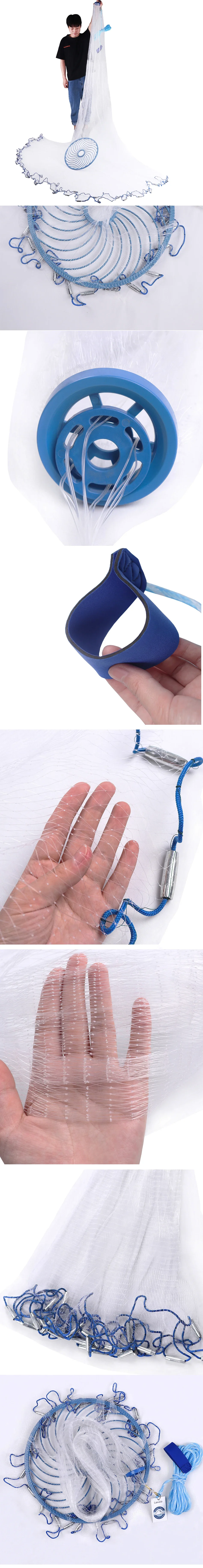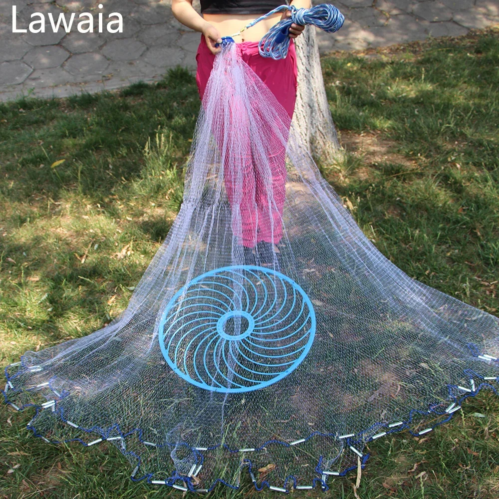 Red de pesca Lawaia, red de lanzamiento manual con plomos de hierro, monofilamento, red fundida de nailon, anillo azul, aparejos de pesca