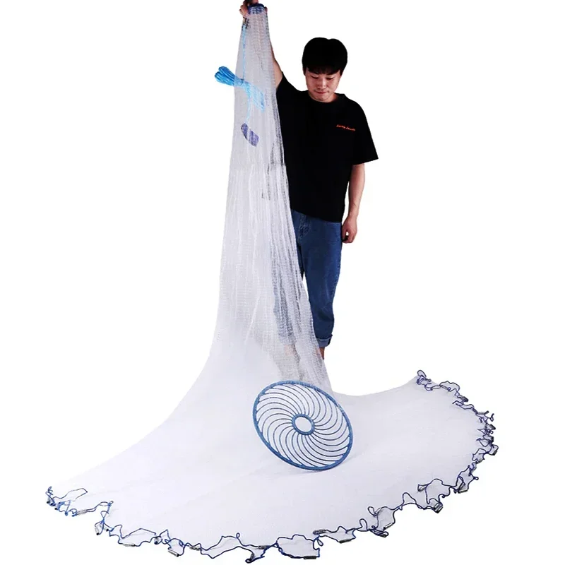 Red de pesca Lawaia, red de lanzamiento manual con plomos de hierro, monofilamento, red fundida de nailon, anillo azul, aparejos de pesca