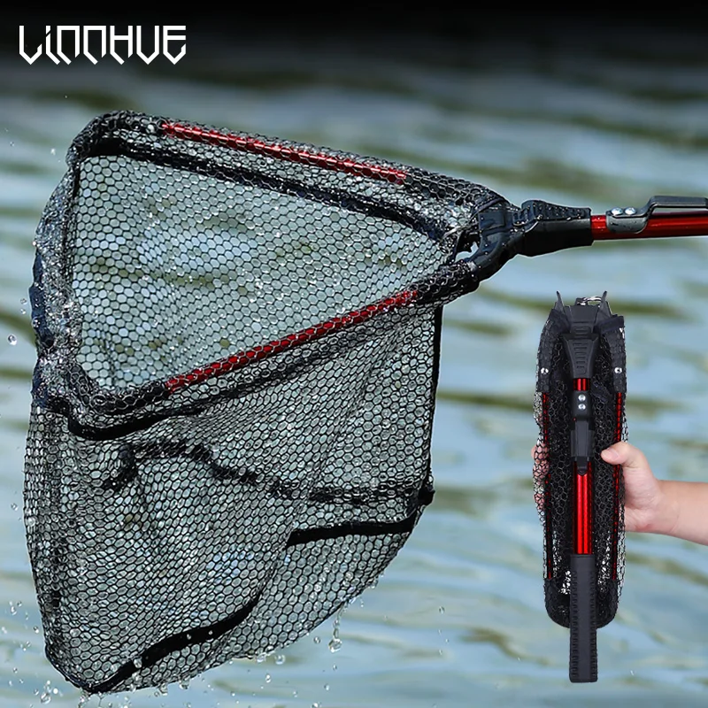 Red de pesca LINNHUE, red de pesca plegable de 90cm con mango portátil, red telescópica de aleación de aluminio para pesca Brail, red de pesca de aterrizaje