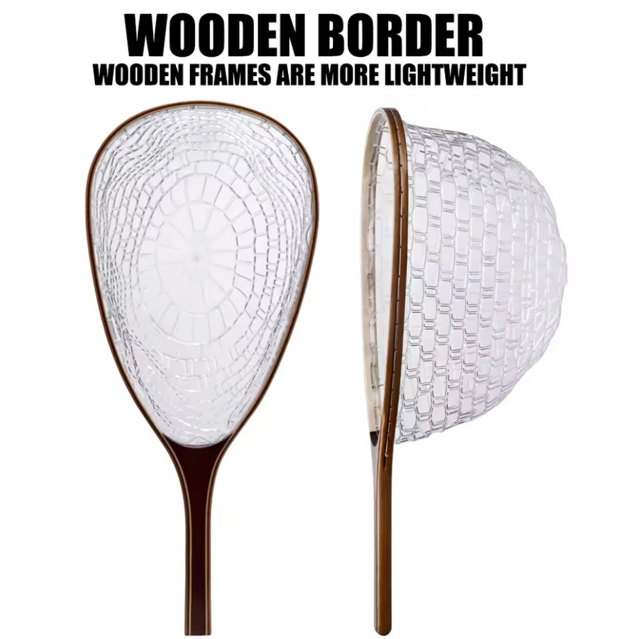 Red de pesca con mango de madera, aparejos de pesca con mosca grande, revestimiento de goma, red de aterrizaje para trucha, herramientas para Lucio, captura y liberación