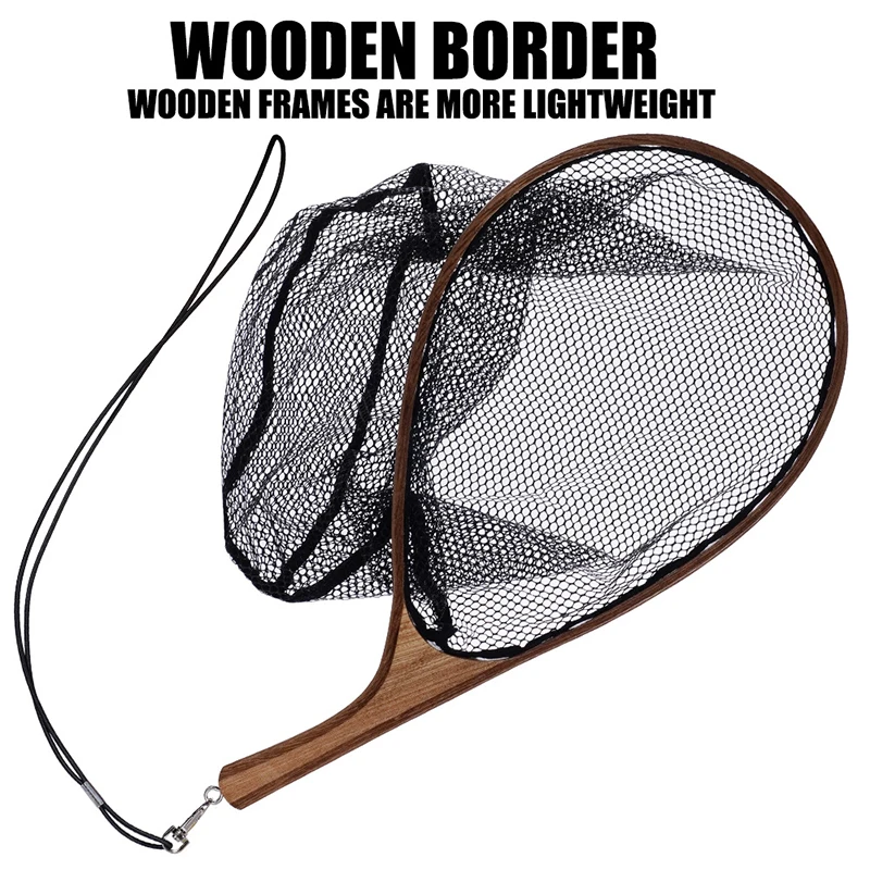 Red de plomería grande de madera maciza, transmisión de moscas, camino de carretera, balsa, pesca, red de plomería, no daña los peces, red de plomería de bolsillo de malla de silicona