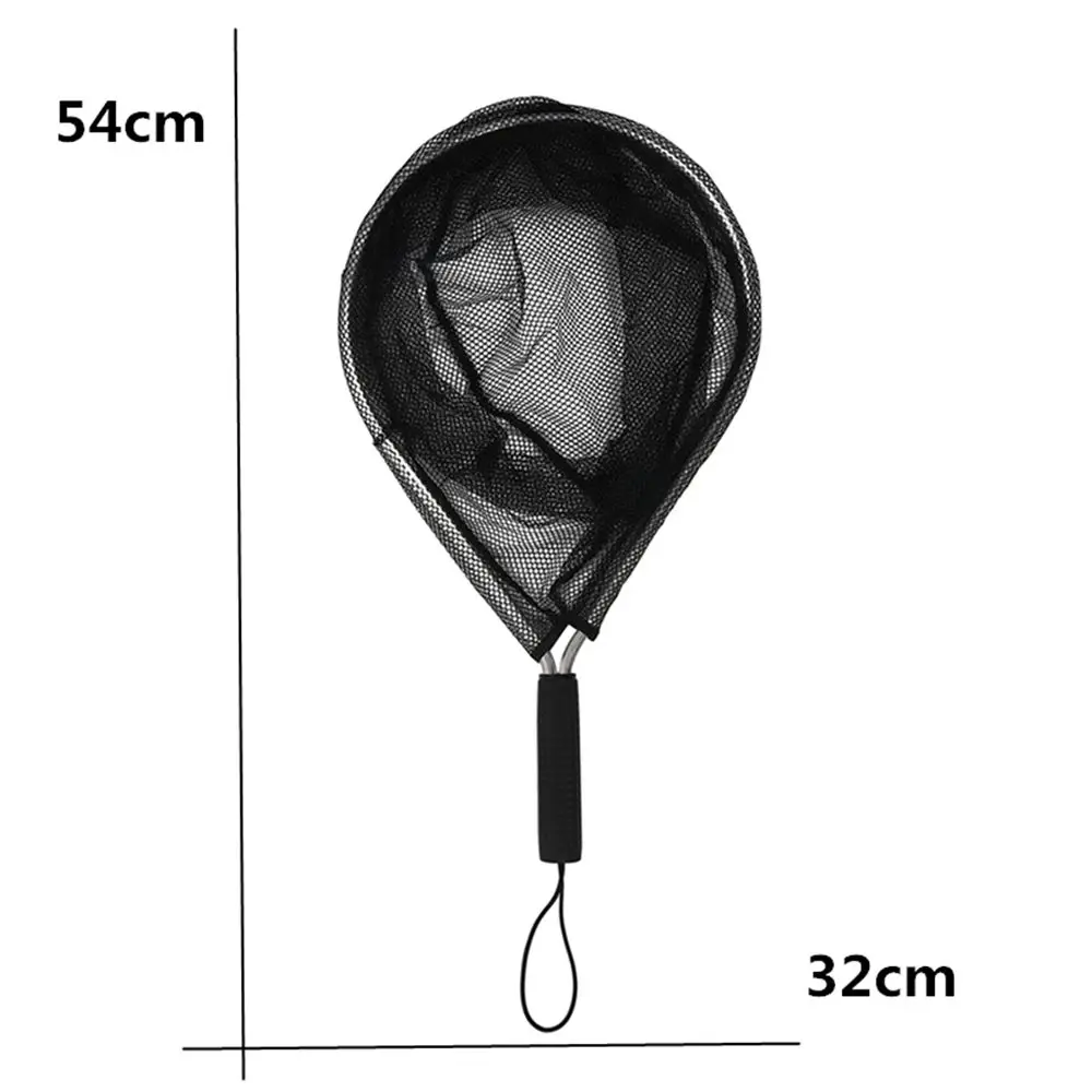 Type: Hand Net Material: Aluminium+Nylon Color: Black Size: (L)*(W): 54*32cm/21.26''*12.6'' (appr.) Package included: 1 Pcs * Landing Net Features: It is a very lightweight, waterproof and durable net. It is an easily operated net series allowing quick netting of fish. This handled trout landing net makes hauling trout into your kayak or float tube easy. The first ever nomad net, the basket is big enough to scoop it all. This unique clam net attaches to a belt, leaving hands free to gather your limit. Enjoy your shopping time and have a good day. Note: Light shooting and different displays may cause the color of the item in the picture a little different from the real thing. The measurement allowed error is +/- 1-3cm.