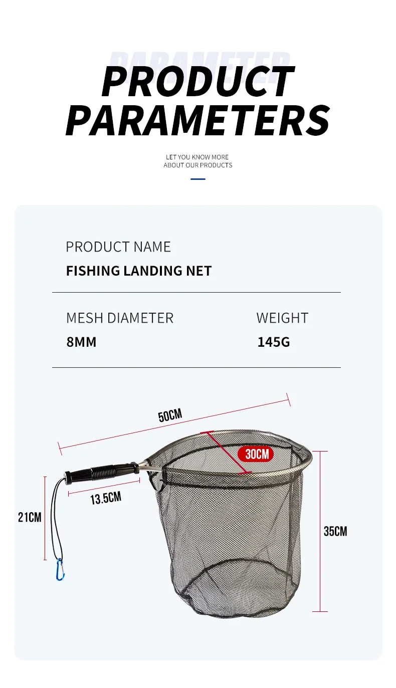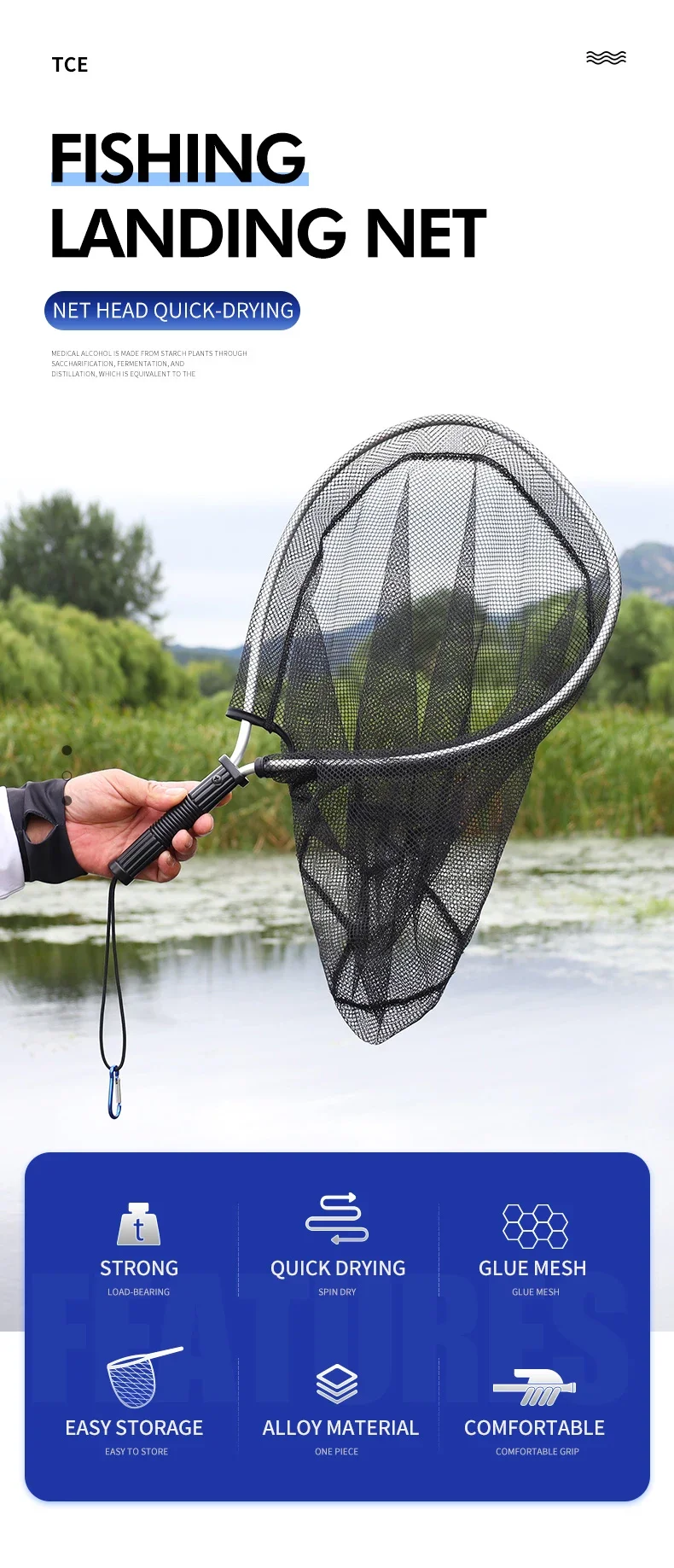 Red de pesca con mosca plegable, malla de goma antideslizante, mango de poste de aleación de aluminio, pesca al aire libre, captura grande, 30x35cm