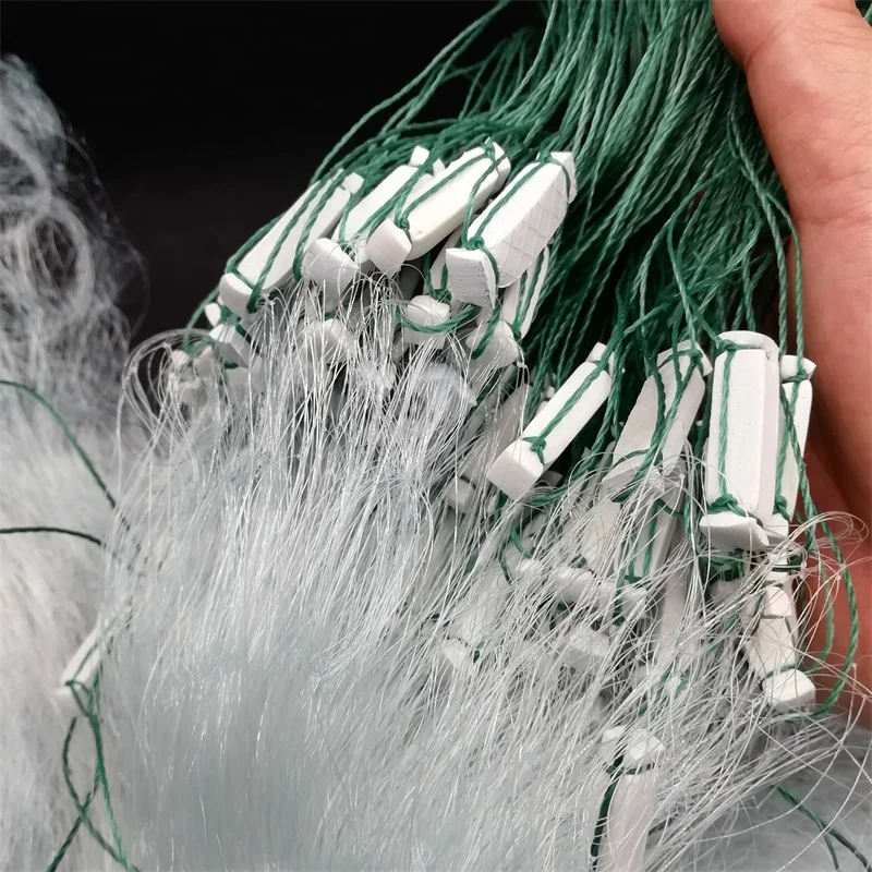 Red de pesca de nailon, malla de tres capas, transparente, blanca, con trampa flotante para peces, monofilamento, longitud de 43M x 1,3 M, 1 pieza