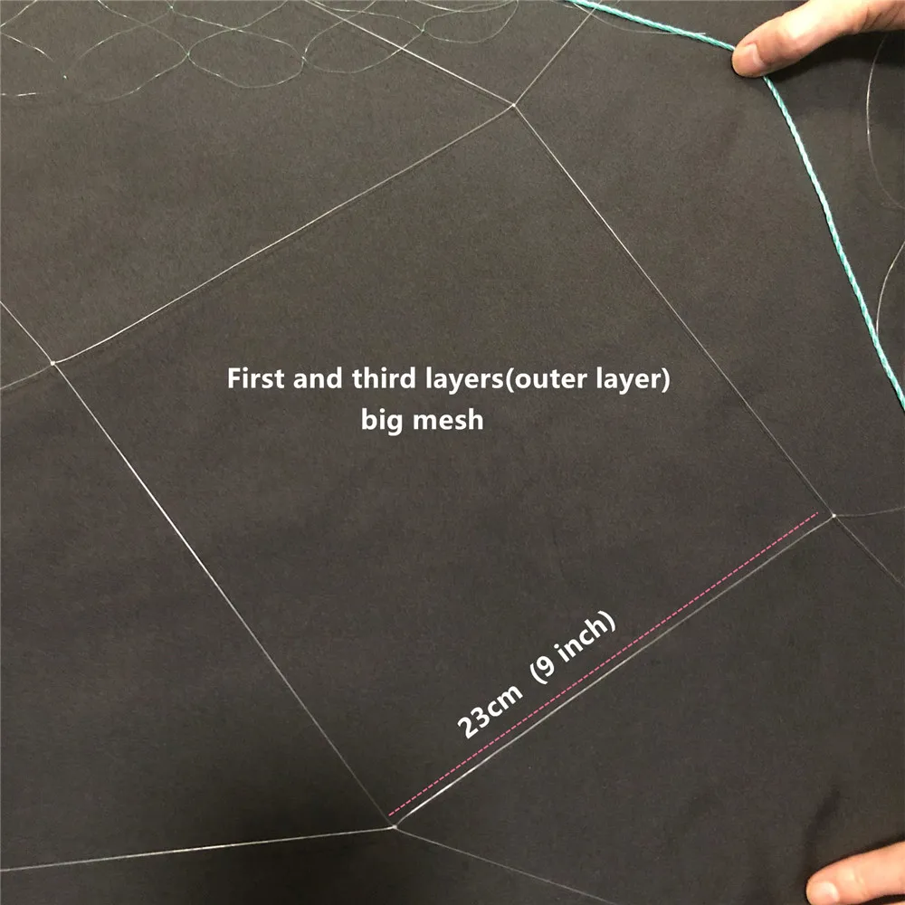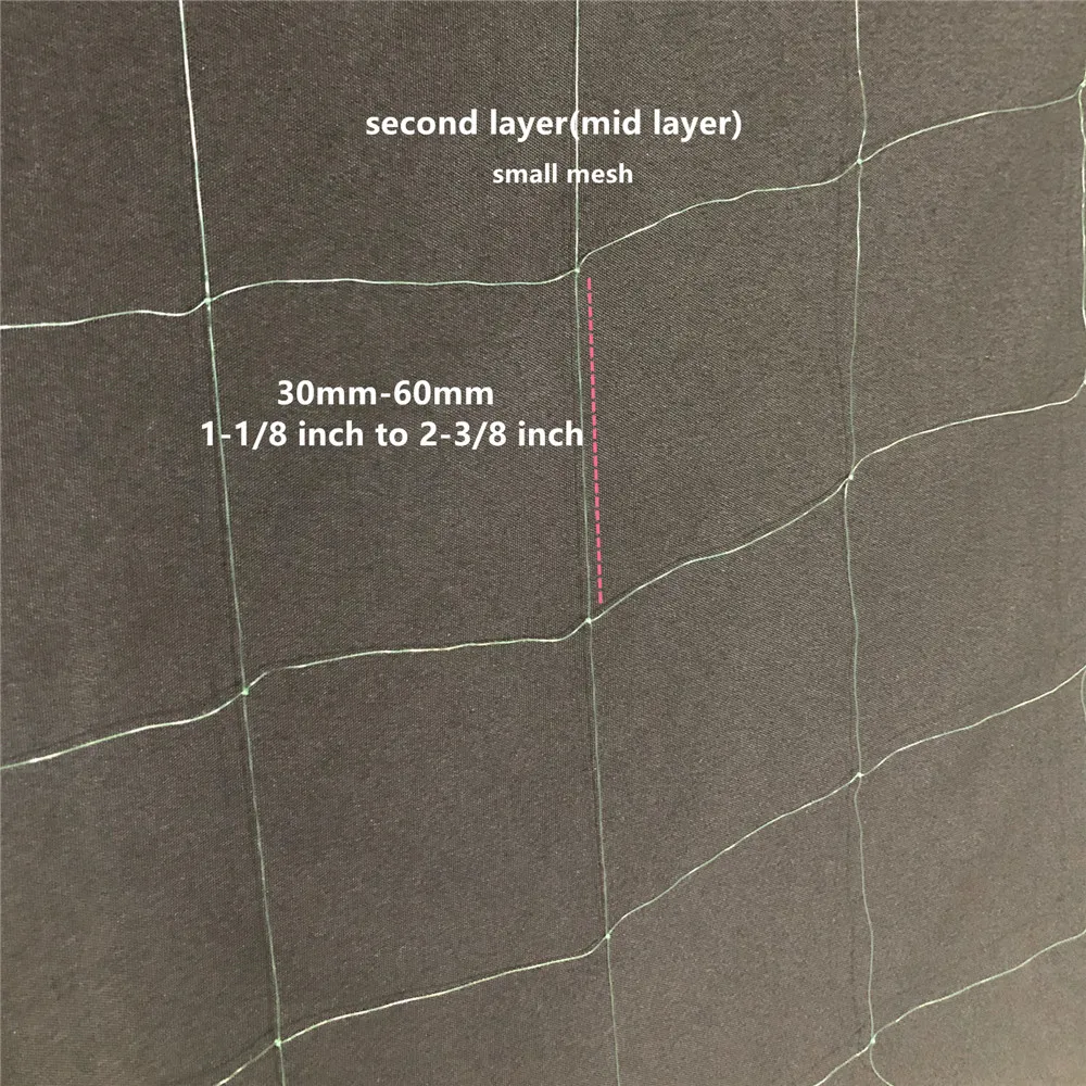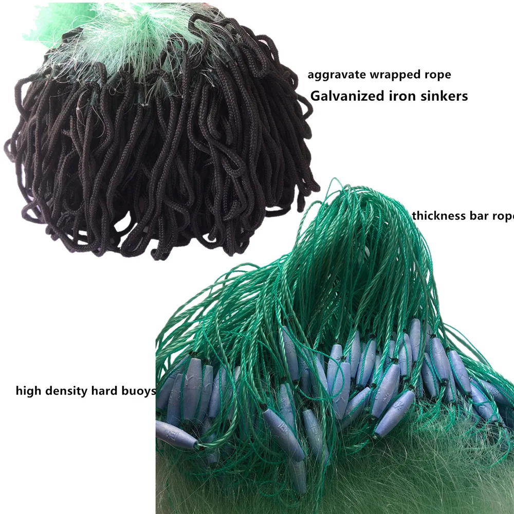 2. Estilo: red de pesca3.Material: nailon monofilamento4. Capa: 35. Colgante: plomo de cuerda envuelto6. Boya: boya dura7.Color:-- Capa media verde-- 2 capas exteriores: blanco8.N,W.: alrededor de 1,4 kg-5kg