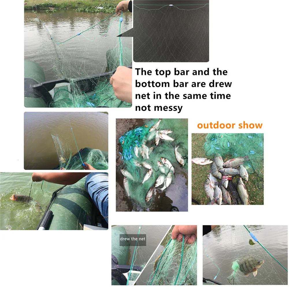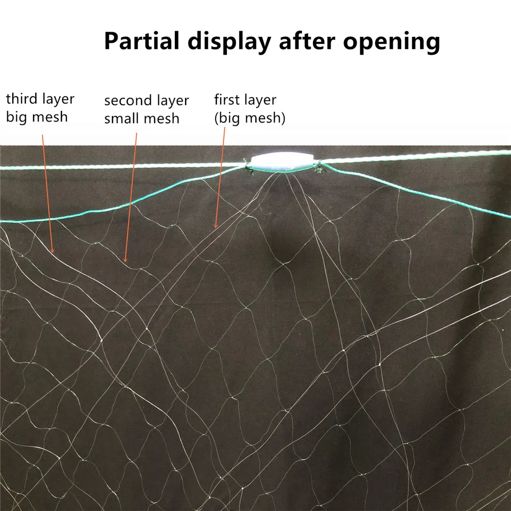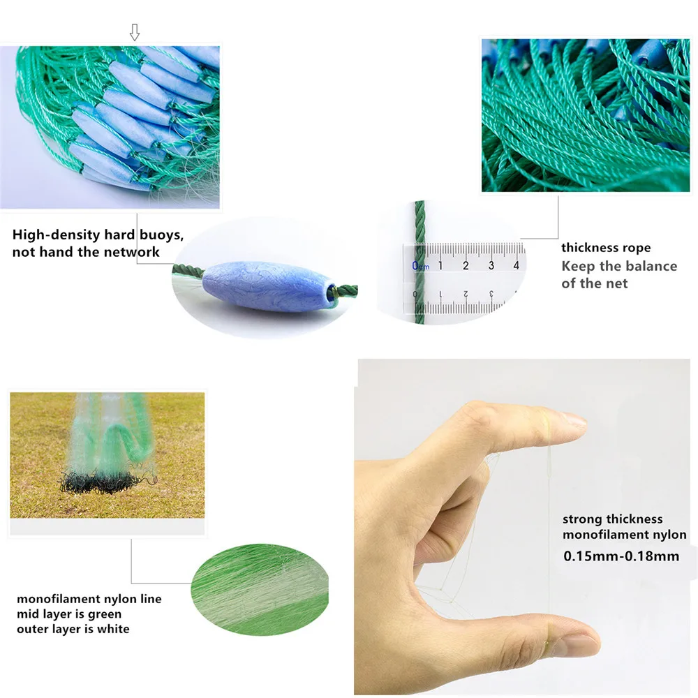 YU-180¡Red de pesca pegajosa de 3 capas de calidad de nuevo estilo, red de enmalle monofilamento de nailon! ¡Boya dura y plomo envuelto!1. Estilo: Red fregadero