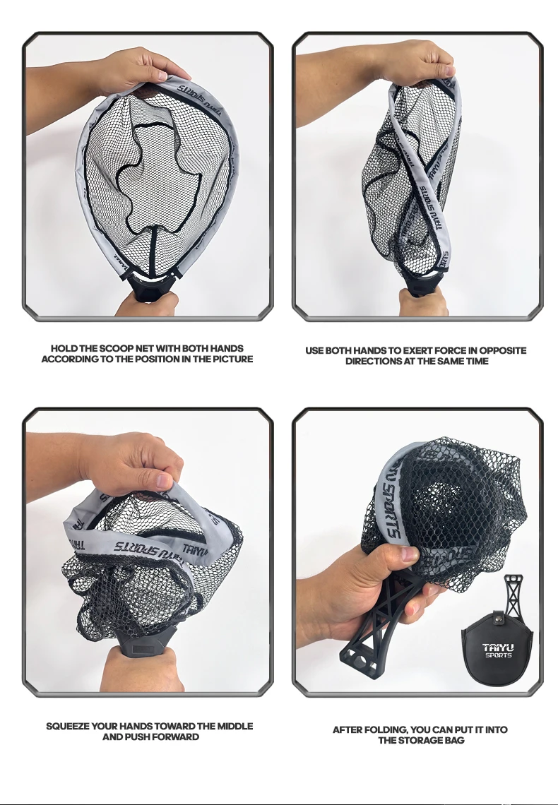 El diseño plegable hace que esta red sea fácil de transportar y almacenar, perfecta para pescadores en movimiento.
