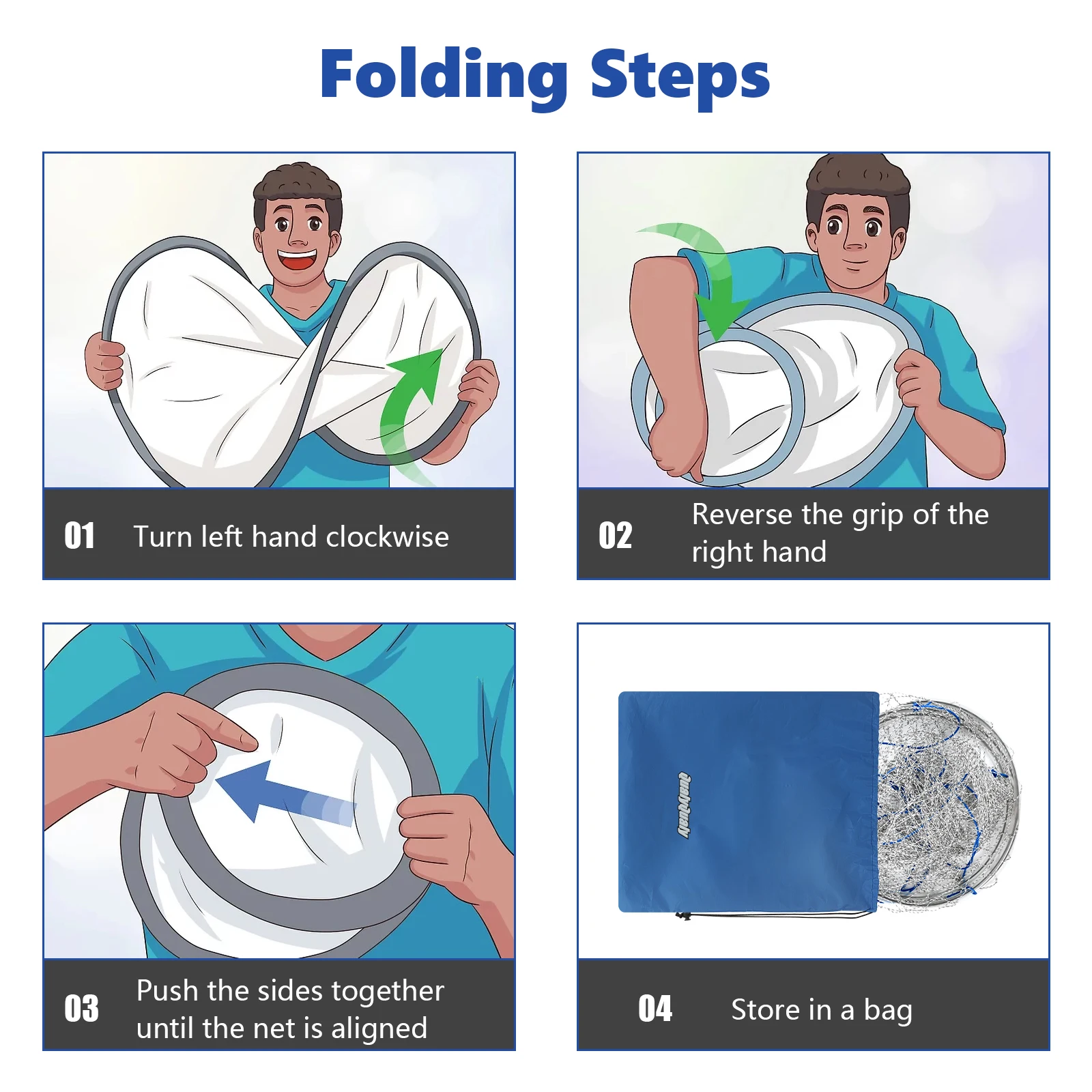 Tamaño desplegado de la red de pesca: 31,5 pulgadas (diámetro) X37 pulgadas (profundidad)