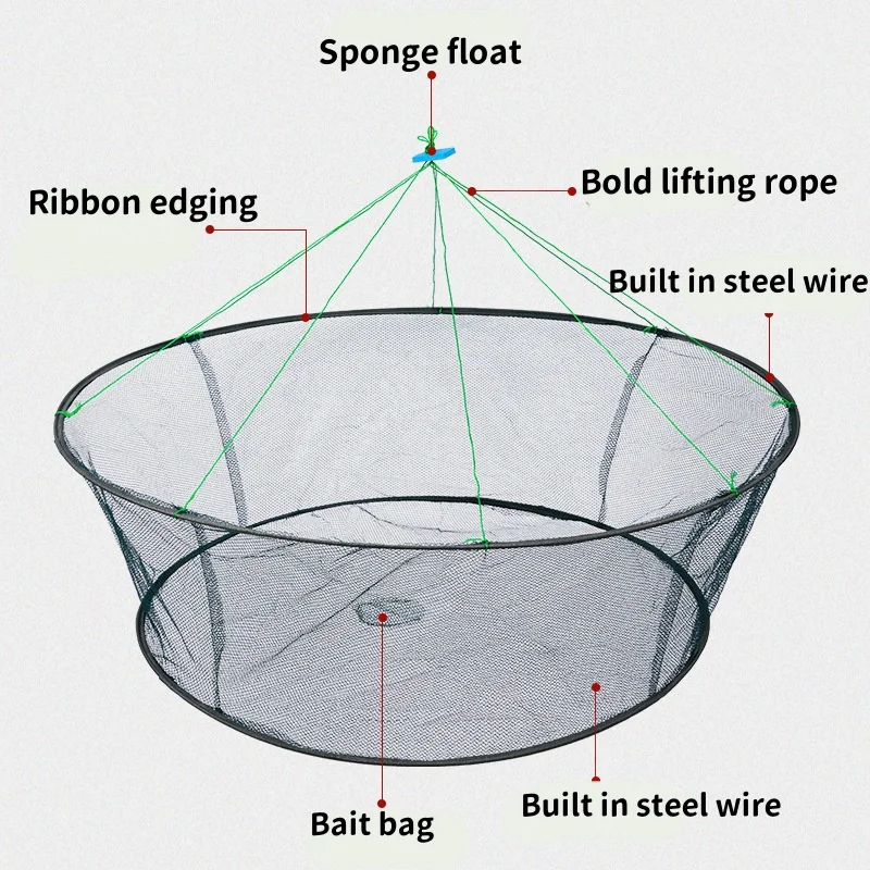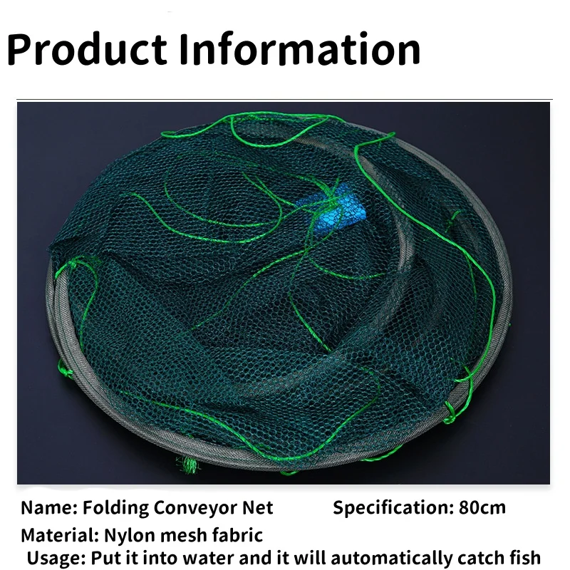 • Adecuado para varios tipos de peces:Esta red es perfecta para capturar camarones, peces, anguilas y cangrejos, lo que la convierte en una herramienta versátil para cualquier pescador.