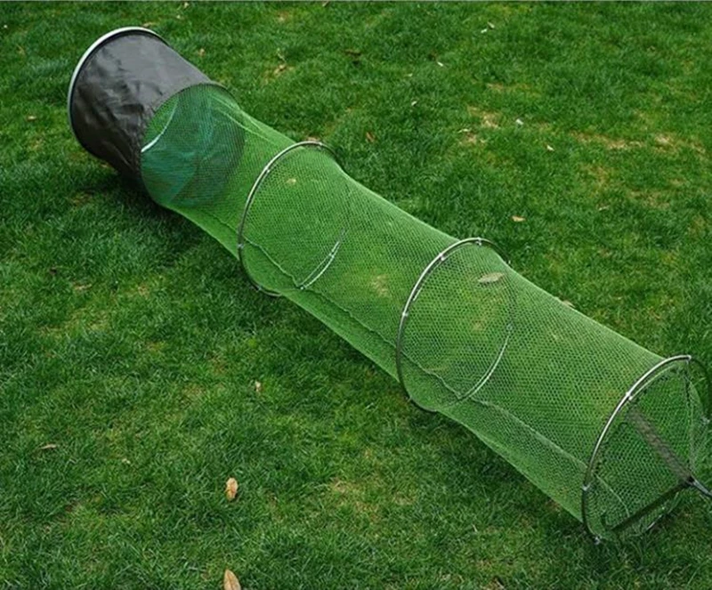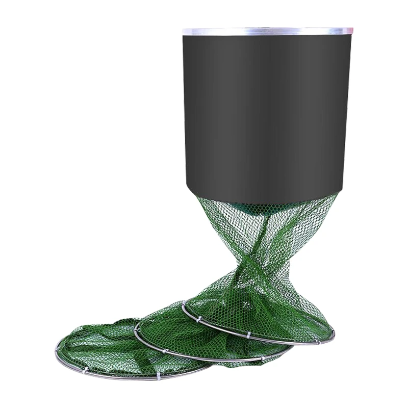 Trampa de red plegable de 33cm de diámetro, Red de inmersión, jaula de almacenamiento, cesta en vivo, red, anillo doble de acero inoxidable